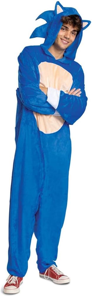 Run at super 'Sonic' speed and become everyone's favorite hedgehog in this Sonic Movie Adult Unisex costume! This extremely soft velvet minky hooded jumpsuit will make you feel just like Sonic with his signature quills and dimensional ears (DOES NOT INCLUDE SHOES).