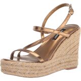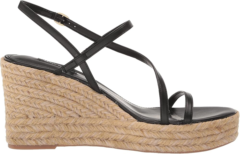 The Nine West Jills wedge sandal is a trendy addition to your wardrobe. This sandal will give you the extra height you want. The asymmetrical skinny straps are paired with an adjustable ankle strap.