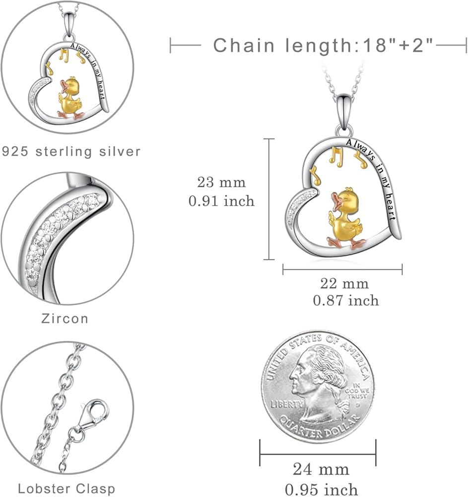💗High Quality Material: This duck necklace is made of 925 sterling silver, hypoallergenic, nickel free, lead free, cadmium free, comfortable to wear, especially suitable for people with sensitive skin.