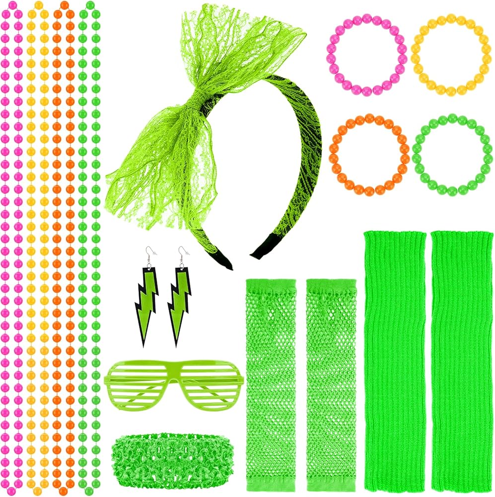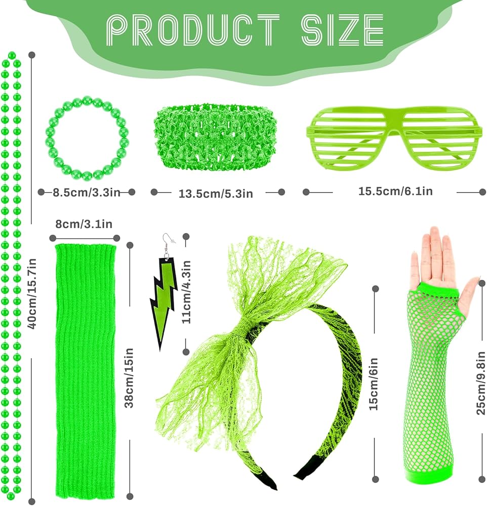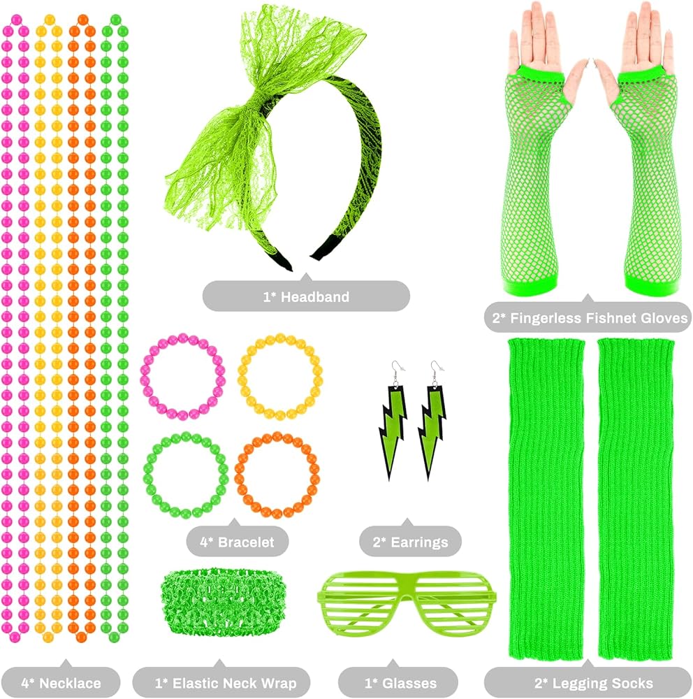 【Applicable Occasions】Our set is perfect for 80s theme parties, dance shows, band shows, carnival parties, skating shows, anniversary parties and other retro-style gatherings. This set of 80s costume accessories for women is also a great gift idea, wear them for a great party time.