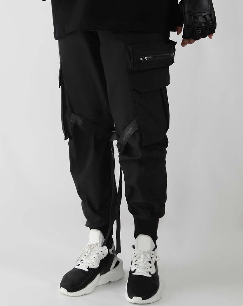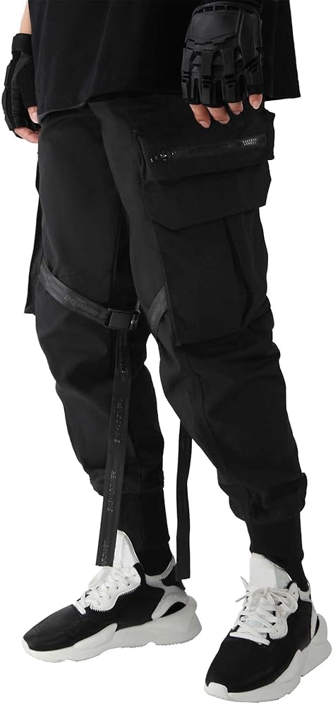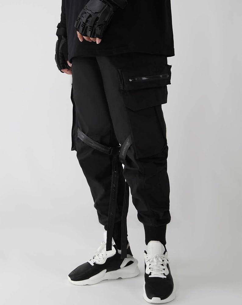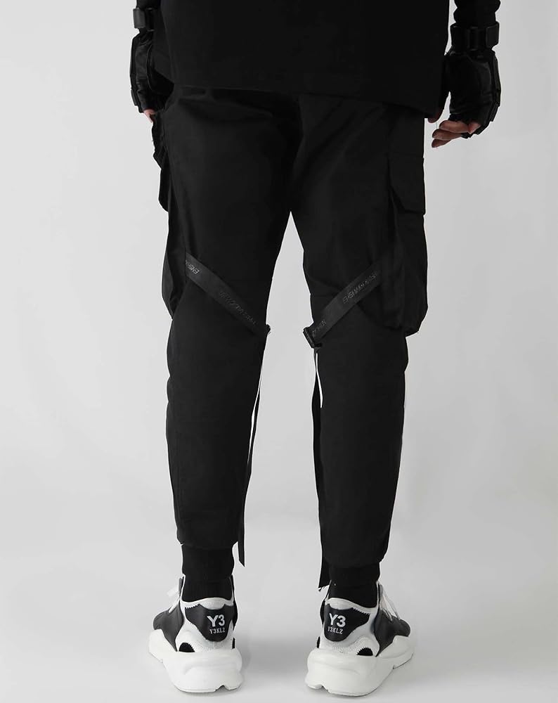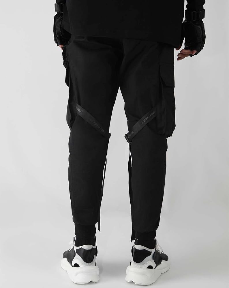 Get the ultimate streetwear look with these joggers cargo pants that feature unique straps, adding an edgy touch to your outfit.