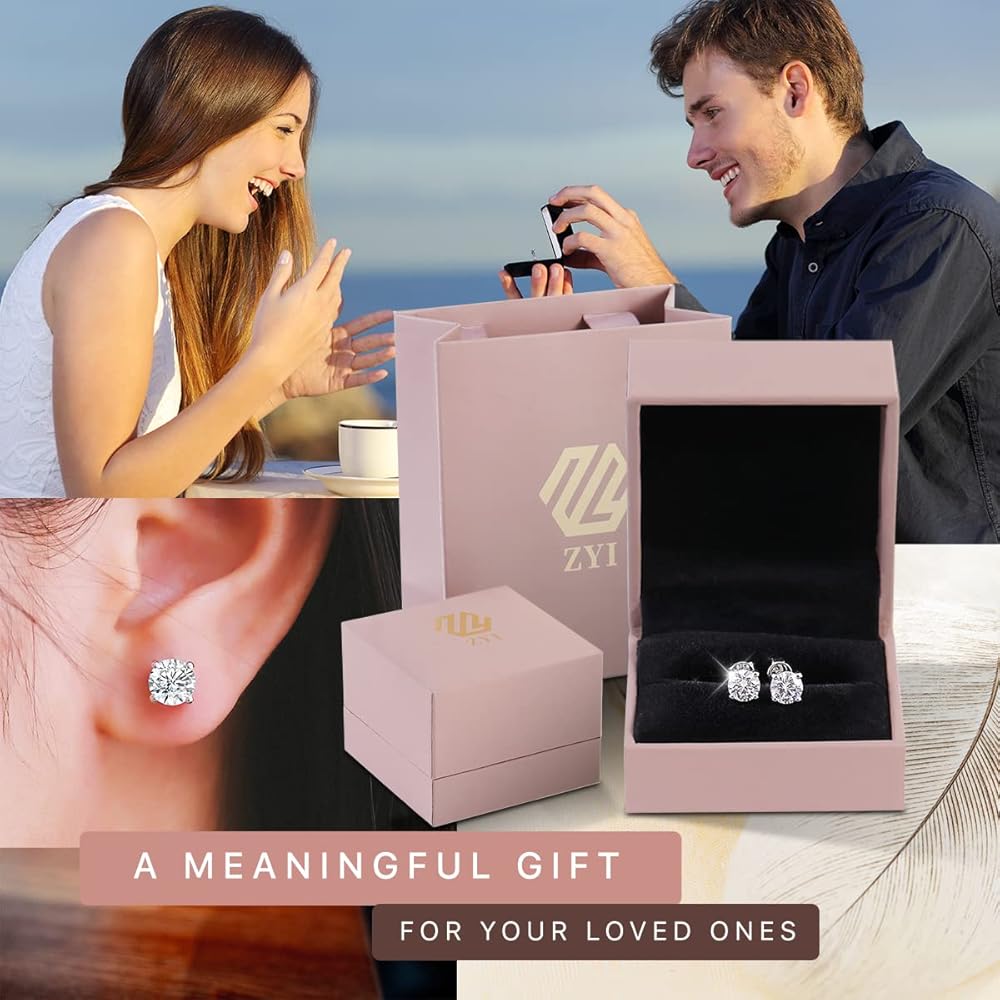 Moissanite earring studs Dcolor VVS1 clarity lab created diamond earrings Hypoallergenic sterling Silver earrings Plated White Gold Jewelry for Women Men