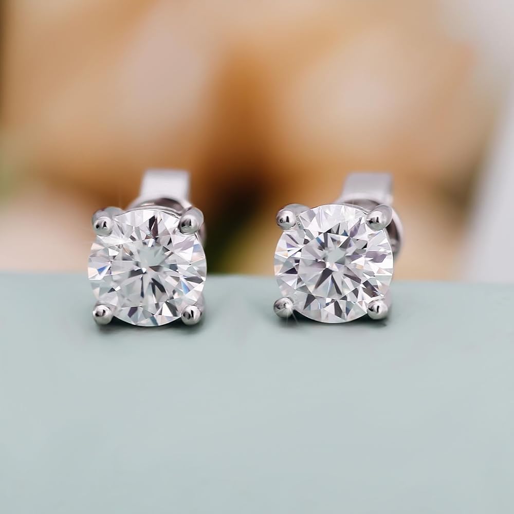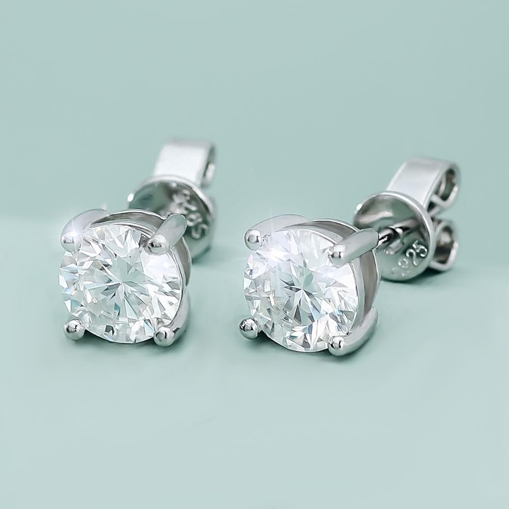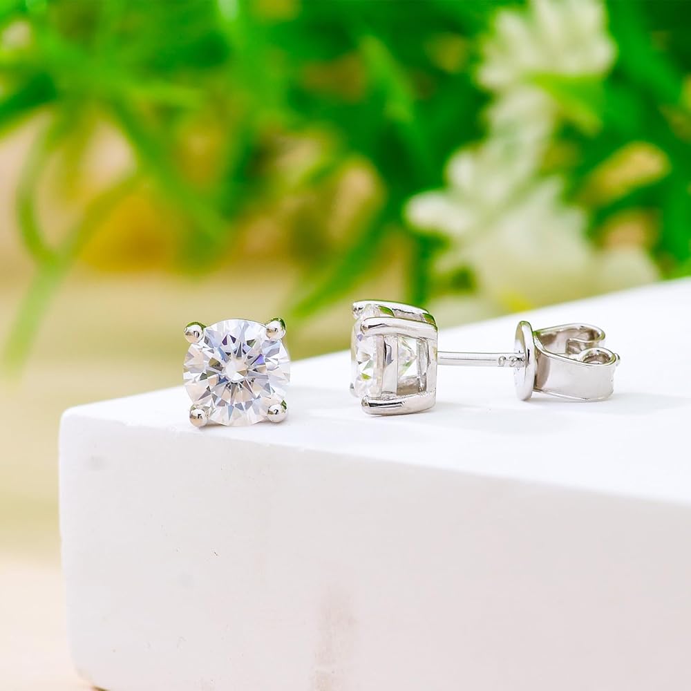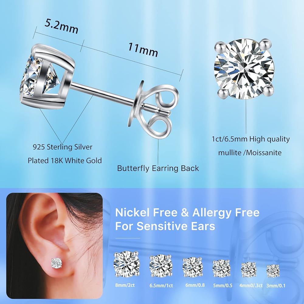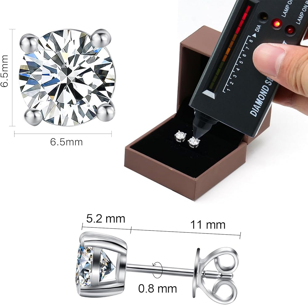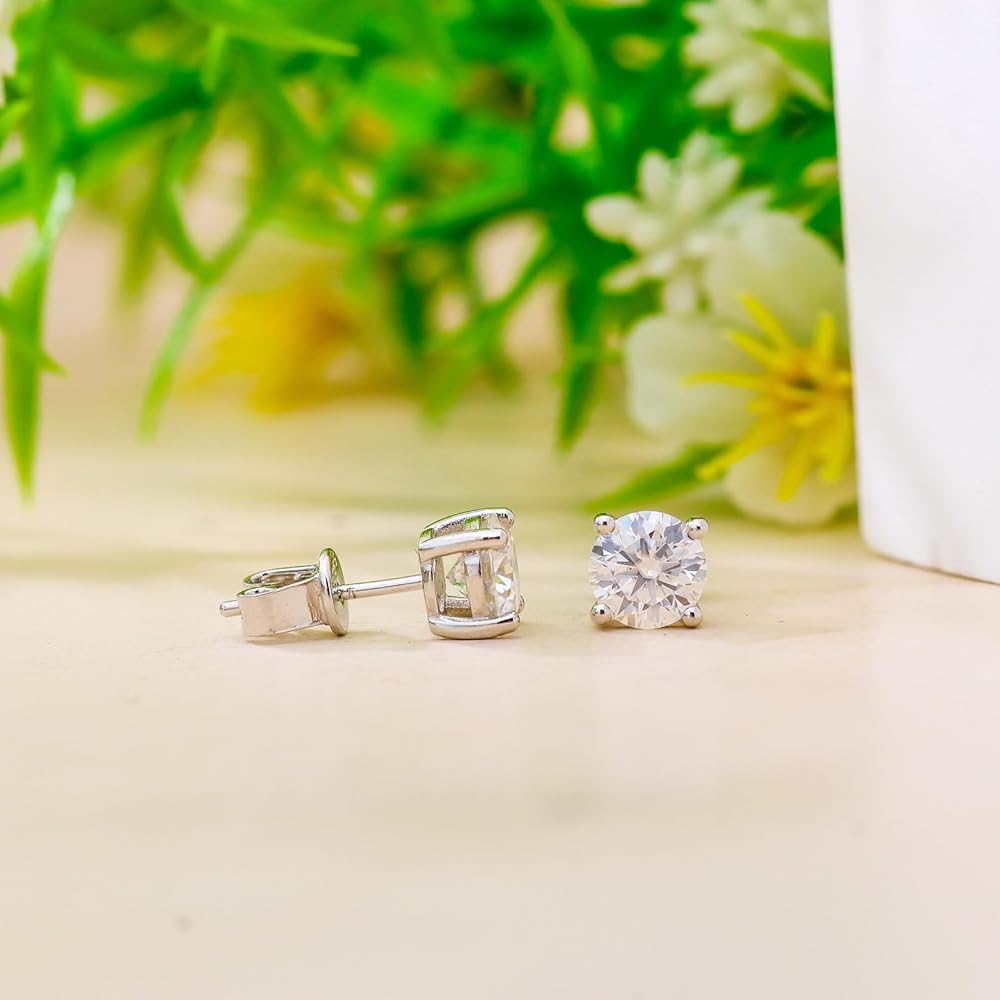 Crafted with premium moissanite:The lab created moissanite diamond earrings is made with 1ct/6.5 mm moissanite,total 2 ct one pair,Total weight: 1.3g;Each stone has been carefully selected, all of which are D color VVS1 clarity.moissanites have plenty of natural sparkle and light refraction-The stones will never lose their Brilliance or Fire.Please see the size details carefully before you place order.