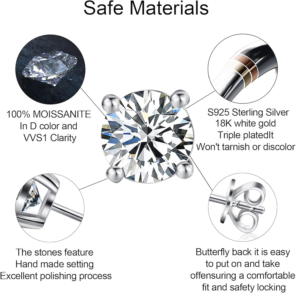 Premium Metal & Setting preppy: This moissanite stud earrings is made with 18k white gold plated silver and created moissanite. The back finding is post with friction back. Made to last a lifetime, strong and durable! The metal back is fine and fits the post of the earrings. They are very snug and easy to use.All the metals we use are lead free, nickel free and hypoallergenic.