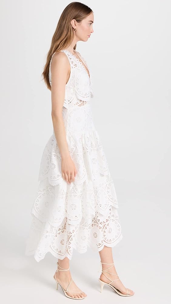 - زخرفة صدفية بالكامل وتطريز على شكل ثقب، وتنورة ذات طبقات