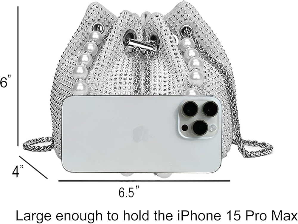 【SIZE & ROOMY】10"L x 6.5"H. Small size but large capacity, You can easily fit your cell phone, cards, money, car keys, small wallet, mirror, lipstick, some makeup etc. The rhinestone purse has a pocket on the inside to put your ID and credit cards and other small items.