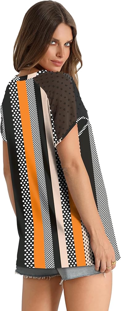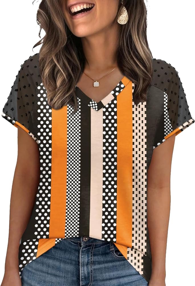 WIHOLL Summer Tops for Women V Neck T-Shirts Swiss Dot Short Sleeve Shirts Casual Fashion Blouses