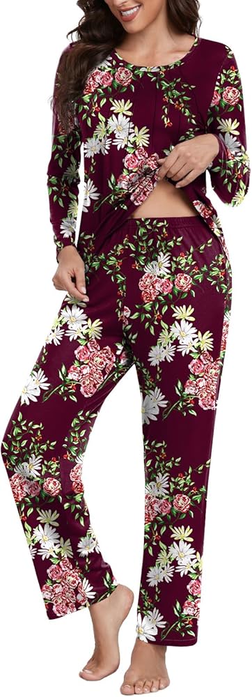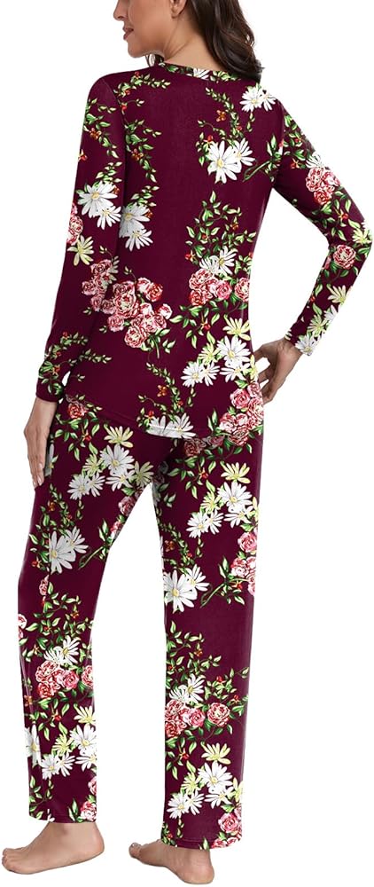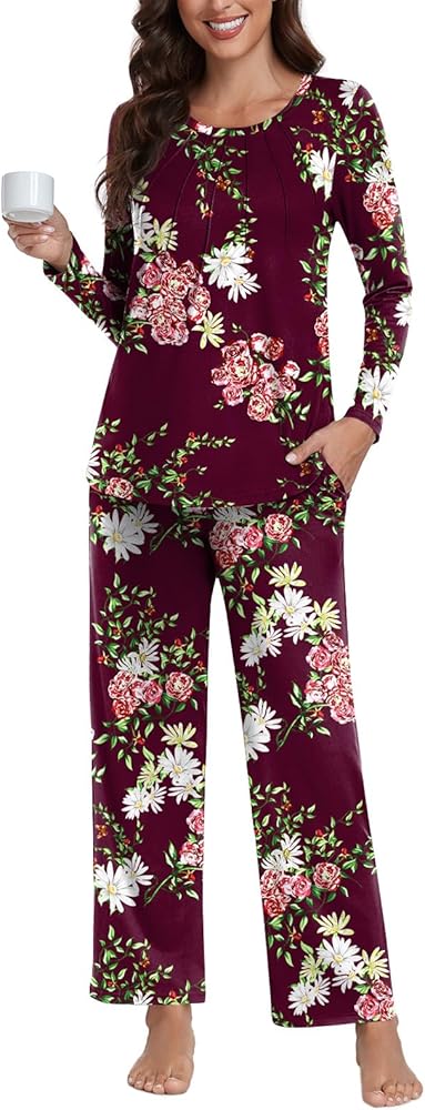 ❤【Superior Material】: This dressy crew-neck pajama set is made from 95% Rayon and 5% Spandex. It is a soft, lightweight, breathable, comfortable, skin-friendly, moisture-wicking, elastic material that is cute and flattering in any body type.