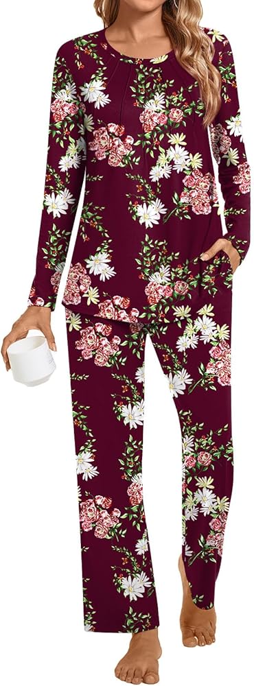 ❤【Fashion-Simple Design】: The cute 2-piece outfits feature a crew-neck, long sleeves, and pleating in the front of the top. The long pants are designed with an elastic waist for a relaxed, comfortable, and elegant fit. With its pleated design on the front, this long-sleeved set gives a vibrant and energetic feeling, allowing you to showcase your fashion taste even in sleepwear.