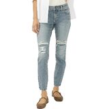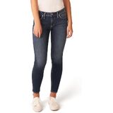 A more relaxed version of our signature curvy fit, Elyse is engineered with an eased waistband that prevents both gapping and muffin top. It's specifically designed for curvy body types who are thicker and fuller through the midsection and backside, featuring a comfortable everyday mid rise with the perfect front-to-back proportion and extra room through the hip and thigh. This pair's finished with a dark indigo wash that's perfect for day and night wear.