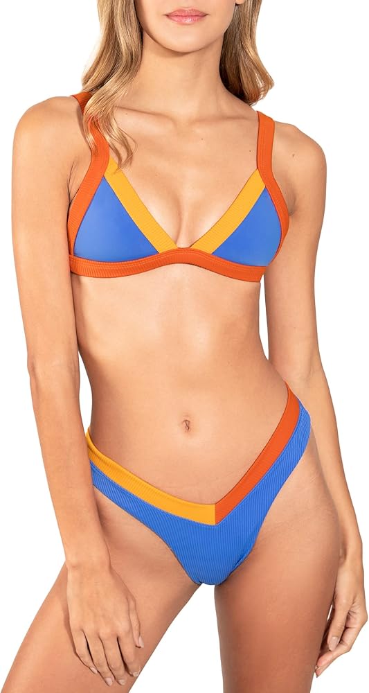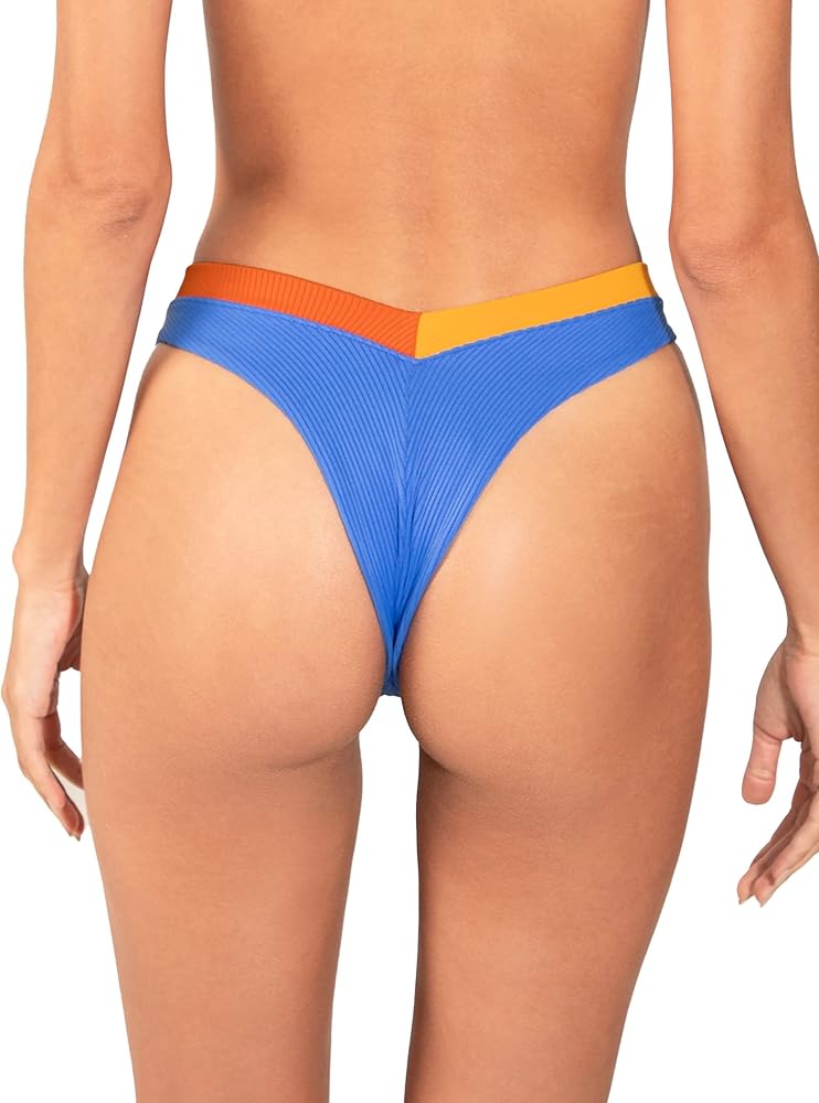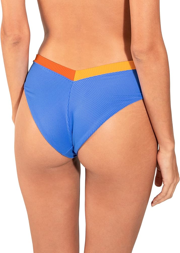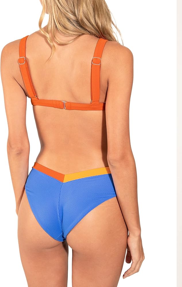 ONEONE Women's Full Coverage Swimsuit Jesse High Cut Bikini Bottom Blue Yellow Orange Cayman Color Block