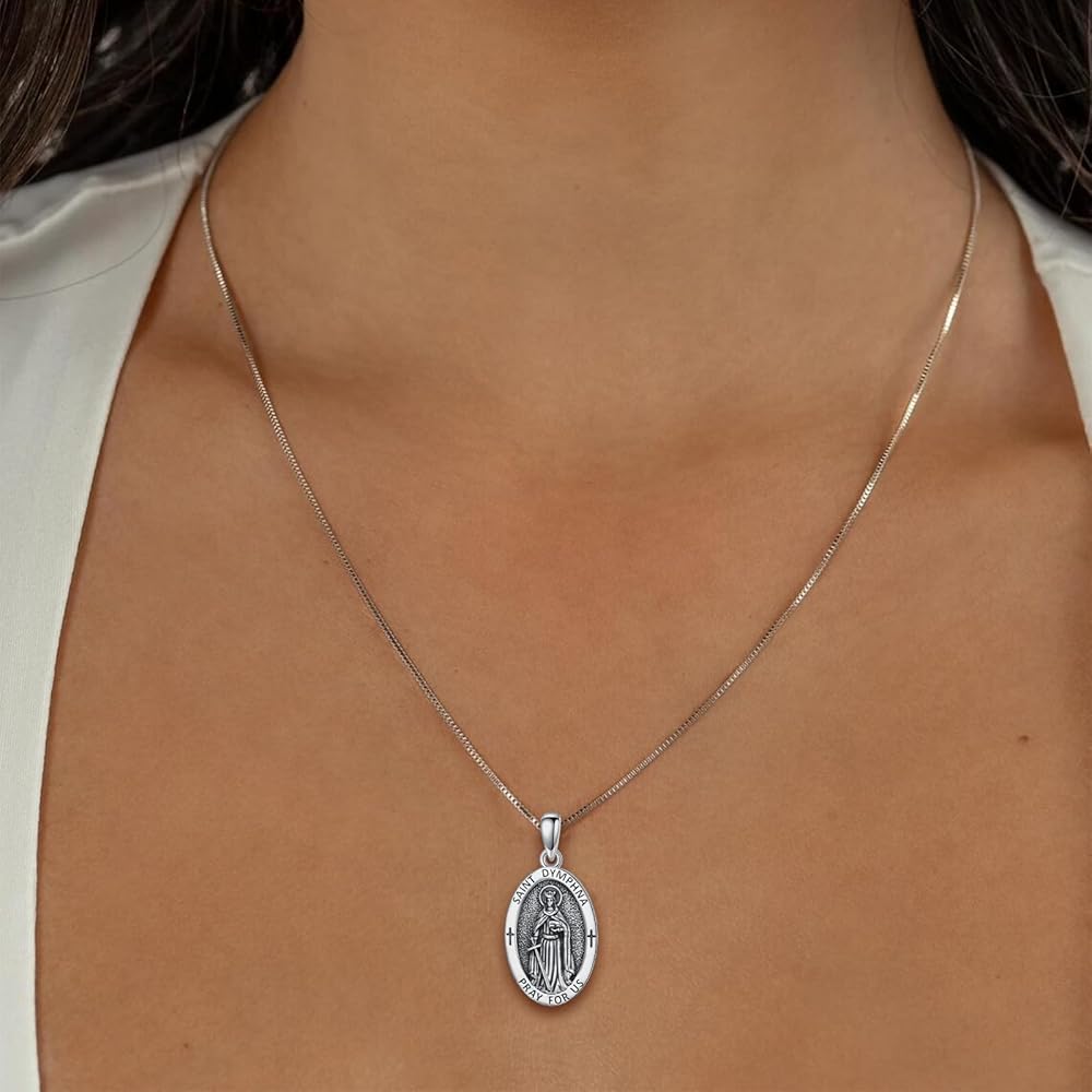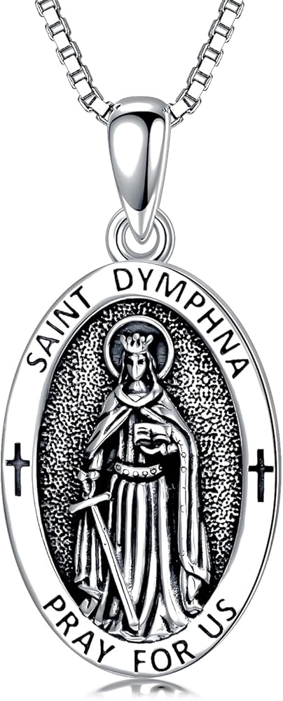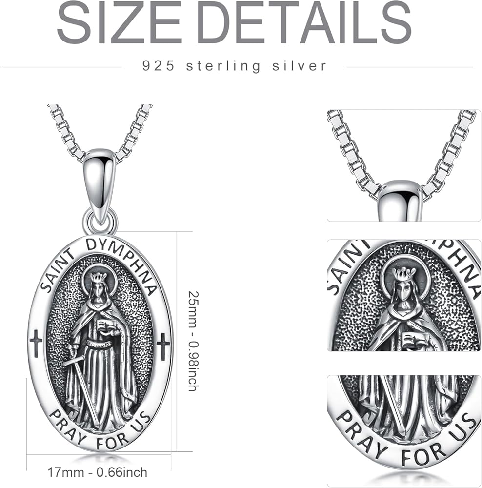 【Material】- Saint Dymphna pendant is made of 925 sterling silver, oxidized to create a vintage style, with a 2mm platinum-plated stainless steel chain, lead-free and nickel-free, hypoallergenic, ensuring wearing comfort and durability.