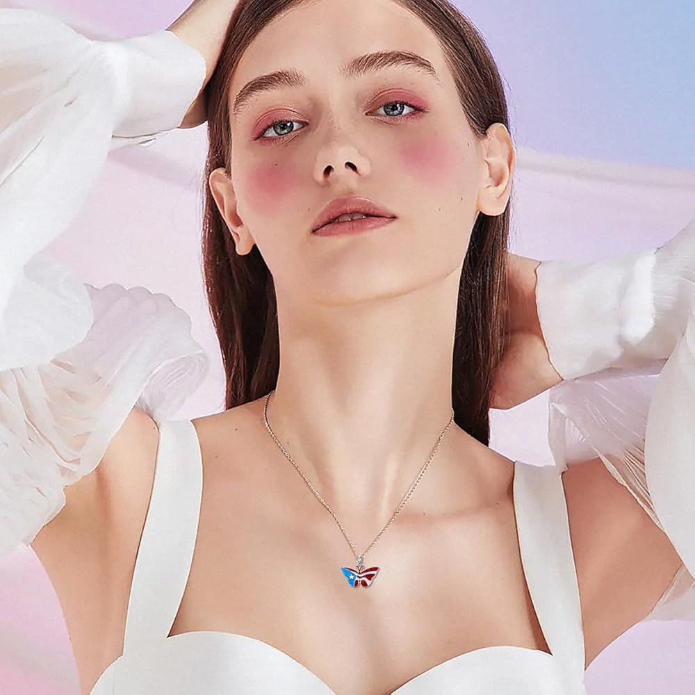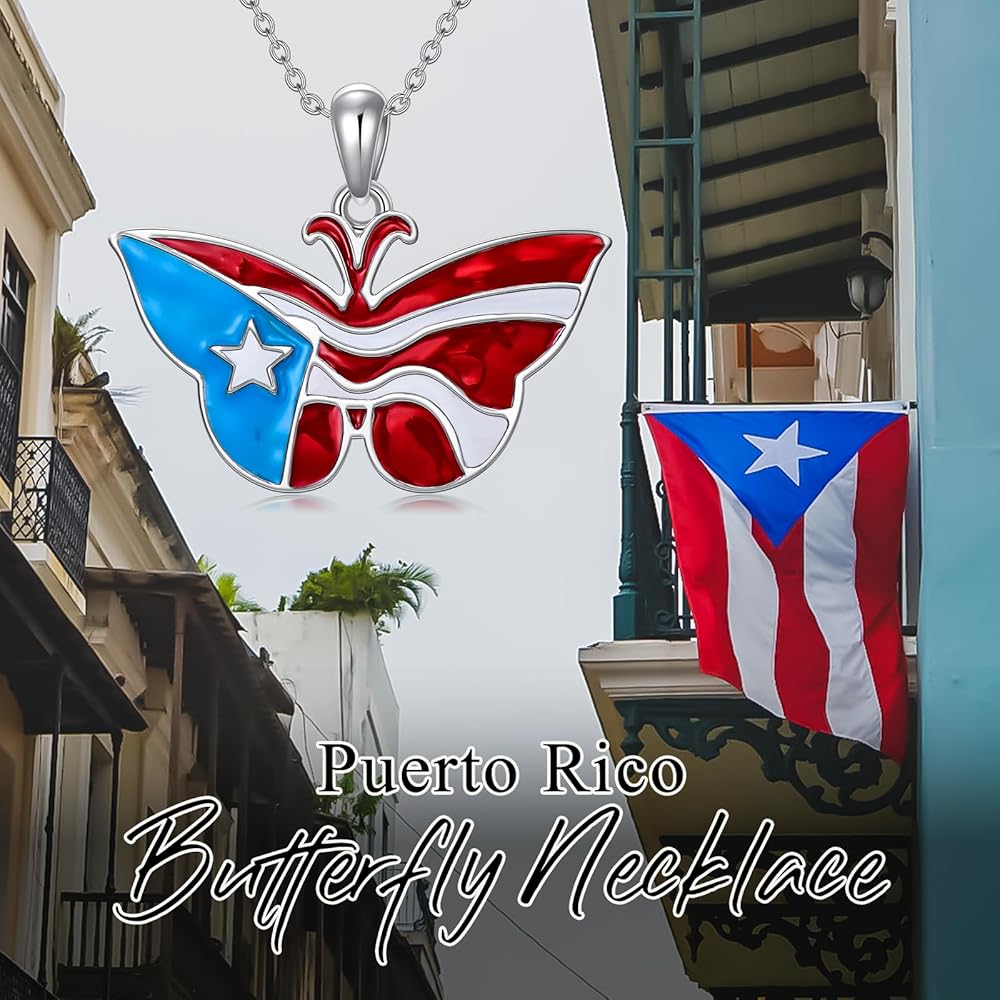Puerto Rican Necklace:The Puerto Rican Flag on this necklace is made of blue, red, and white glue dispensing process, combined with the shape of a Butterfly to form a Puerto Rican flag necklace.The Puerto Rico Flag Necklace is a wonderful gift for those who are homesick or want to cherish the beautiful memories they had in Puerto Rico.
