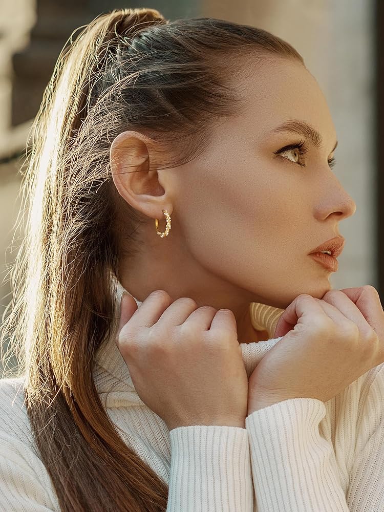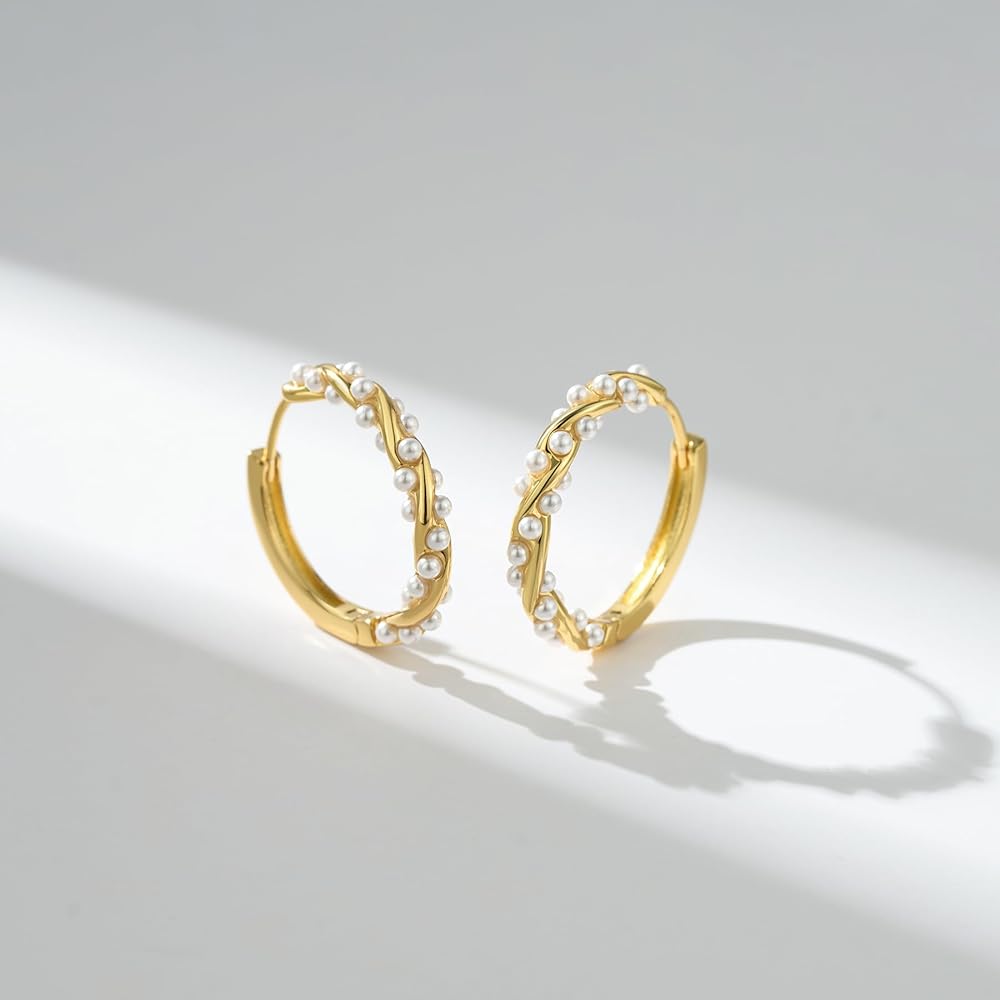 【 Material】 These dainty pearl hoop earrings for women are made of 14K gold plated copper, 925 Sterling Silver Posts decorated with pearl , the back of comfy earrings Is Not Easy to Fall off, which is comfortable for sensitive ears Hypoallergenic, and does not flake off and lose color.
