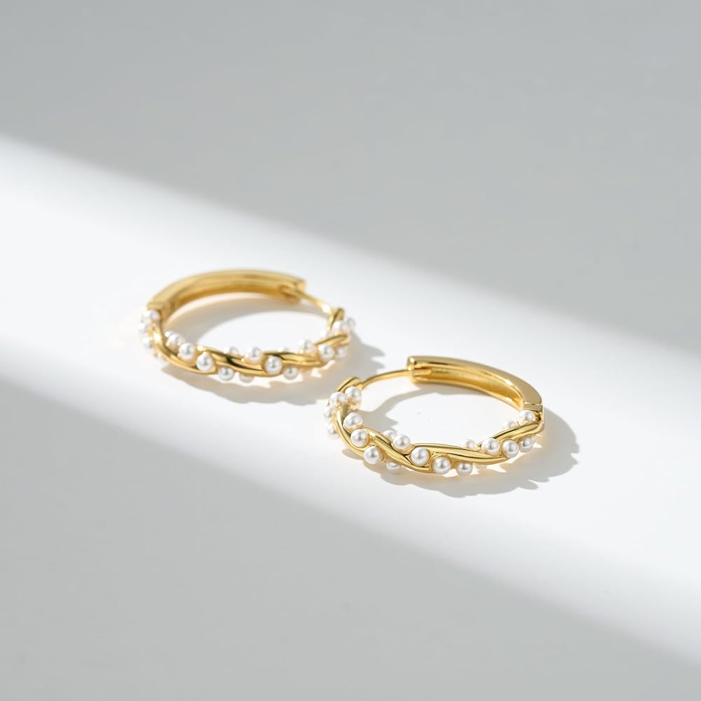 【 Perfect for Any Occasion】 Small pearl hoop earrings Are Your Pretty Choice for Gift Ideas— for Birthdays, Anniversaries, Valentine's Day, Christmas, New Year, Mothers Day, Graduation, Engagement, Wedding, party, boutique etc. Packed in a delicate gift box.