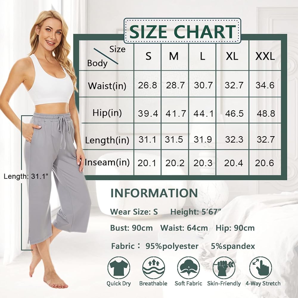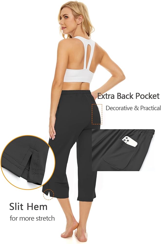 Premium Material- Soft, Comfortable, Lightweight, Breathable, Flowy, Lasting comfort & fit. BATHRINS women's capri pants will help you stay cool in summer heat and will be your go-to everyday capri. Womens sweat pants nice comfy cotton capri pants for ladies, teen girls, juniors.