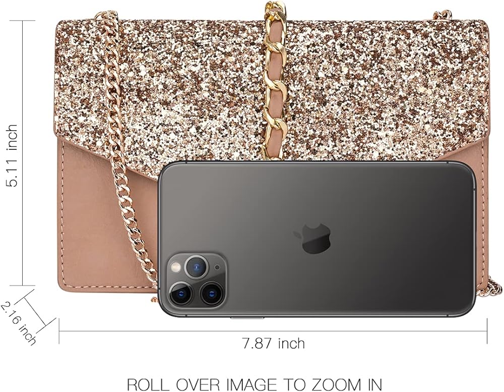 OCCASION - A festive pick for your next formal event such as weddings, banquets, parties, prom, club, cocktails, etc., this glittery crossbody bag perfectly accommodates your phone and party essentials. It delivers chic style for dinner or date in glitter textile with a jewelry-like chain