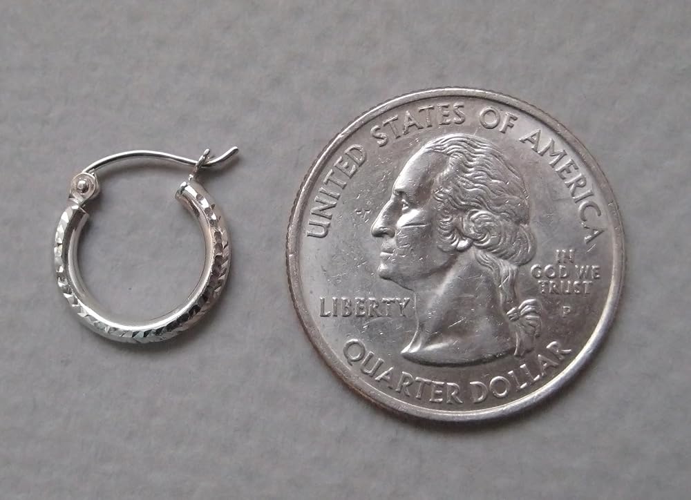 SIZE: These 14k white gold hoop earrings are one of our most popular sizes, 20mm or about ¾ inch. Their diamond cut finish means they will sparkle to anyone who sees you. They look even better in real life than these photos depict. Please check the model photos for an accurate portrayal of their size. These are 14k white gold, not gold-plated or silver.