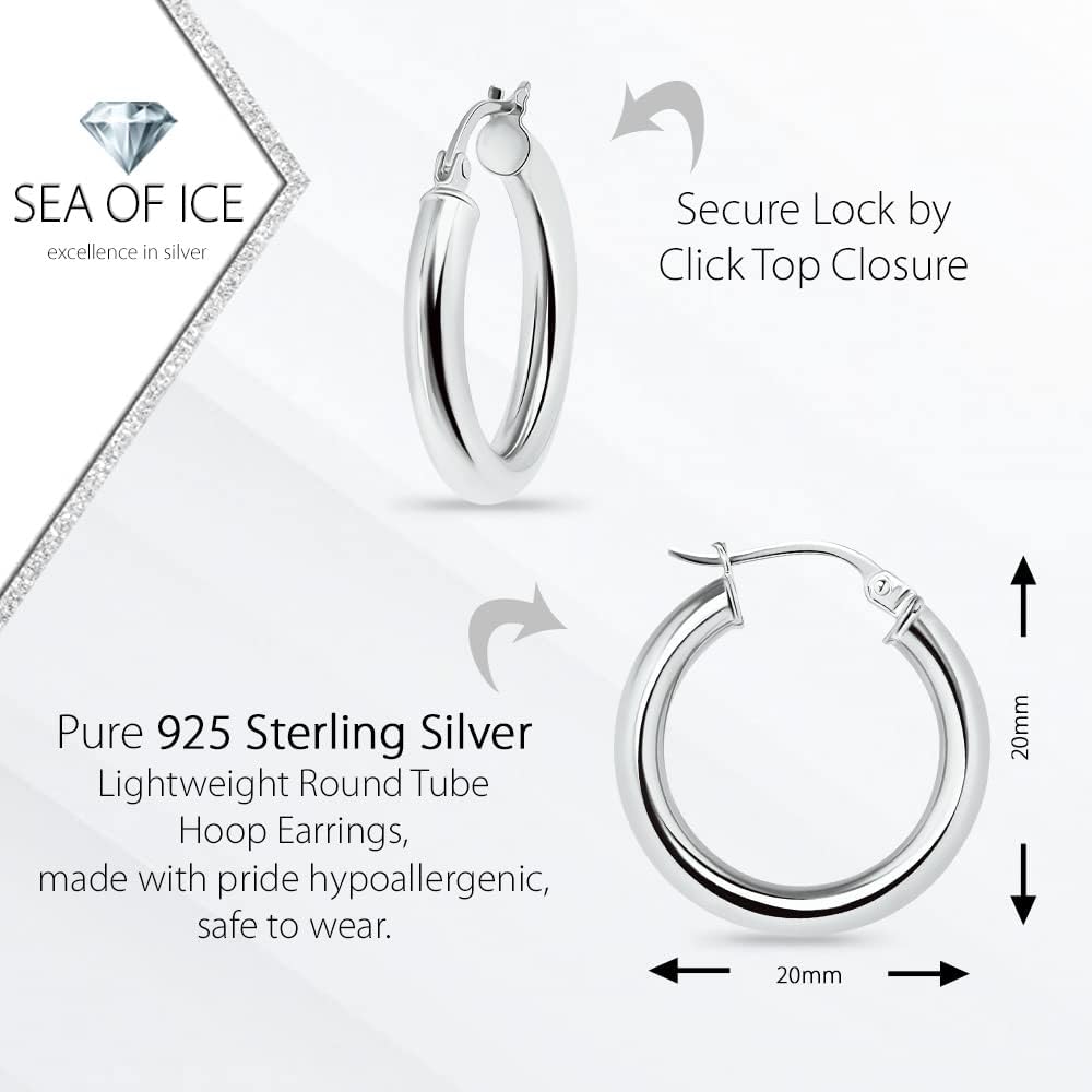 Earrings for women trendy: These Sterling silver hoop earrings are a stylish accessory that can effortlessly elevate any outfit. With a polished finish and a round-tube design, they offer a sleek and contemporary look that complements various styles.