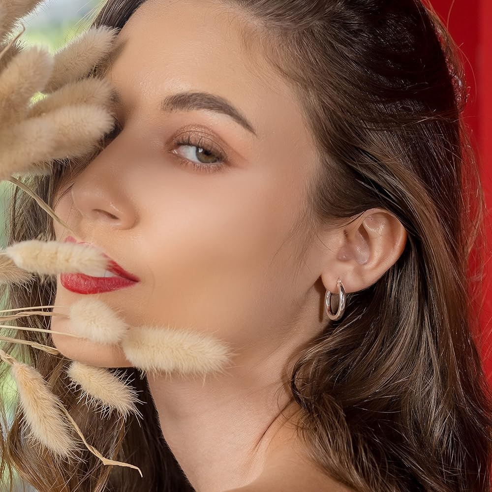 Womens earrings hoops: These small thick sterling silver hoop earrings are designed to hug the earlobe comfortably, making them an excellent choice for everyday wear. The huggie style provides a secure fit, ensuring that the earrings stay in place without causing any discomfort.