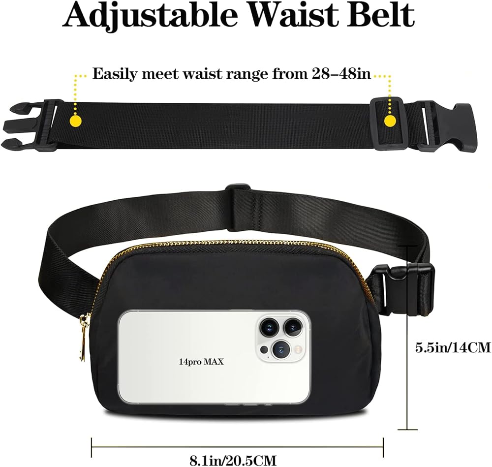 【Adjstable Strap】Can be easily and quickly adjusted to any length you need and will stay at the length you choose without loosening, It can be carried as cross back, Shoulder back, Waist back or fanny pack. It's all up to you. Perfect fanny packs for women.