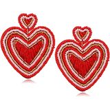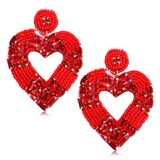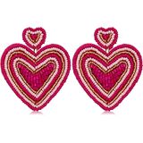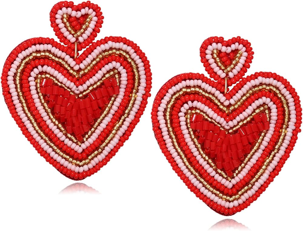 Boho Bead Earrings Design: Add some sparkle and love to your outfit with these bohemia sweet earrings. pink and red /green seed beads form a charming heart design dangling from a heart base. The fashionable jewelry accessories offer a classy look for a romantic night out on the town and make a thoughtful gift, too, for Valentine's Day.