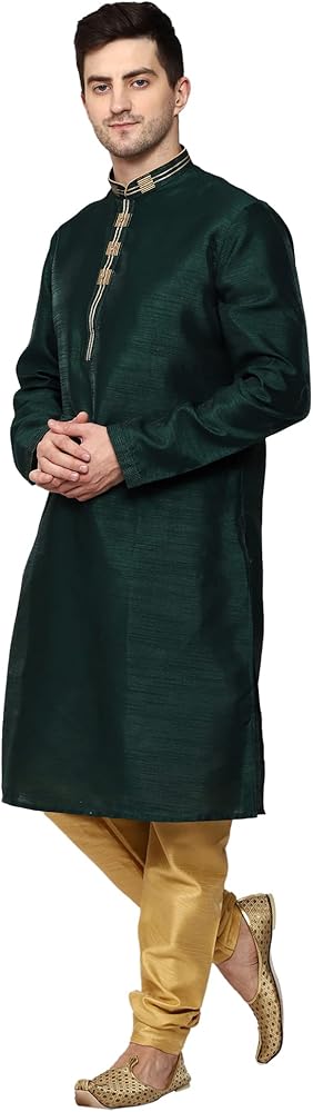 HIGH QUALITY MATERIAL: Lightweight and breathable material gives this kurta pajama set soft, comfortable feel. Made from the finest handloom dupion art silk fabric. The kurta is lightweight with vented side.
