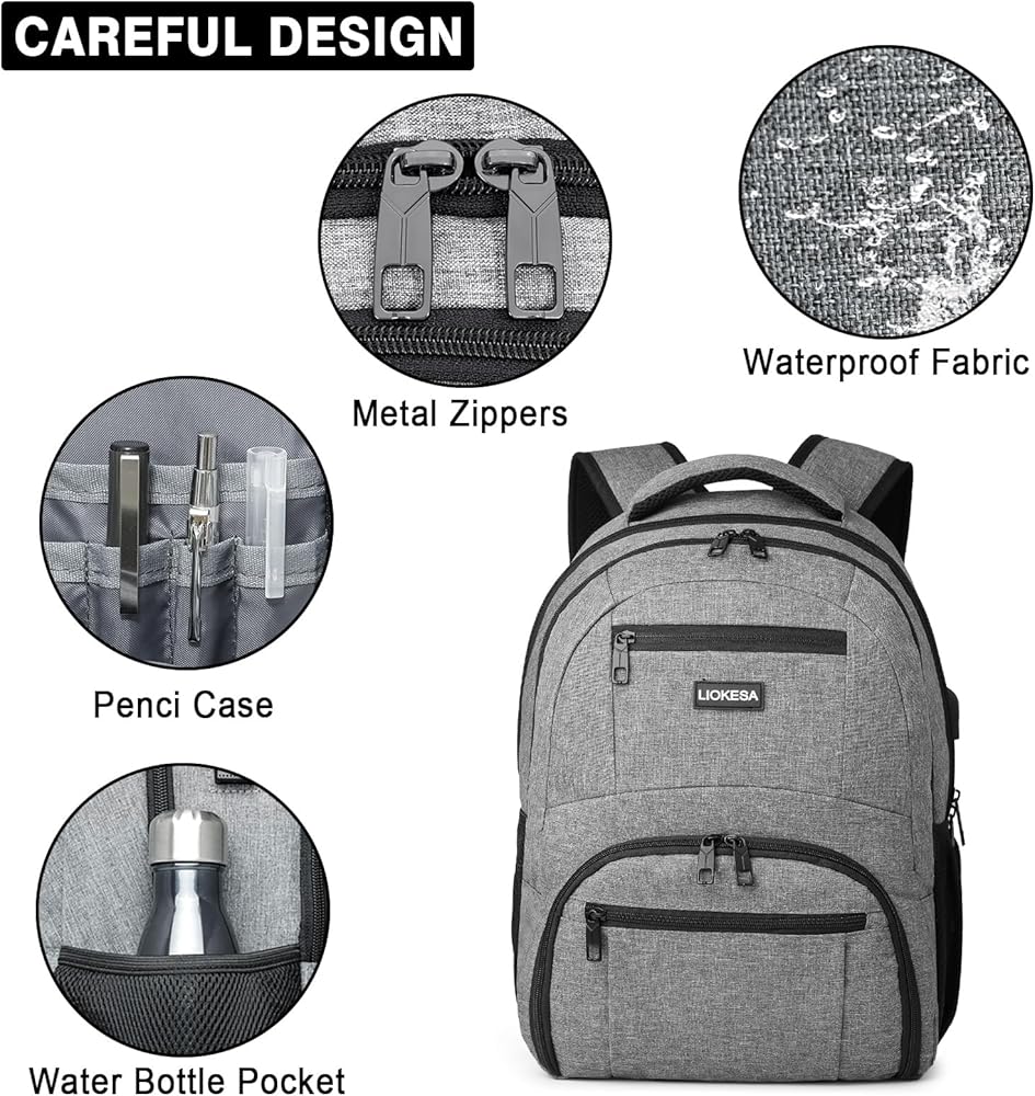 LARGE CAPACITY - The size of LIOKESA black backpack for men is 17 * 12 * 5.1 inches, 30L. The laptop backpack has 5 compartments and 2 side pockets - 1 15.6-inch padded laptop compartment. There is a main compartment inside for storing folders, books, clothes, and other work school supplies. 2 front pockets can hold pens, sunglasses, chargers and keys. There is also a passport compartment in front of the backpack. Travel backpack keeps everything in order.