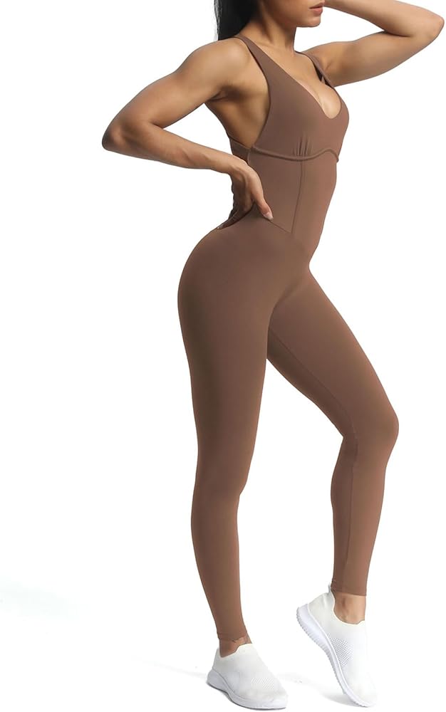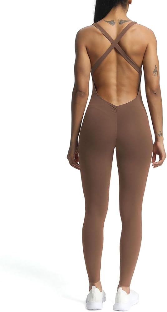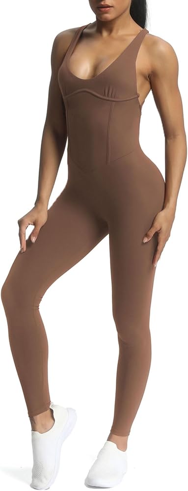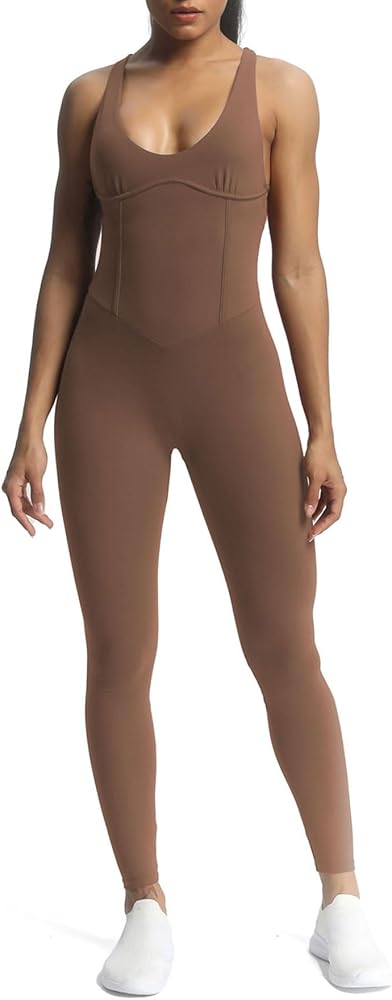 AUROLA Power Romper for Women Workout Yoga Gym Seamless One Piece Racerback Jumpsuit Tummy Control Padded Sports Bra