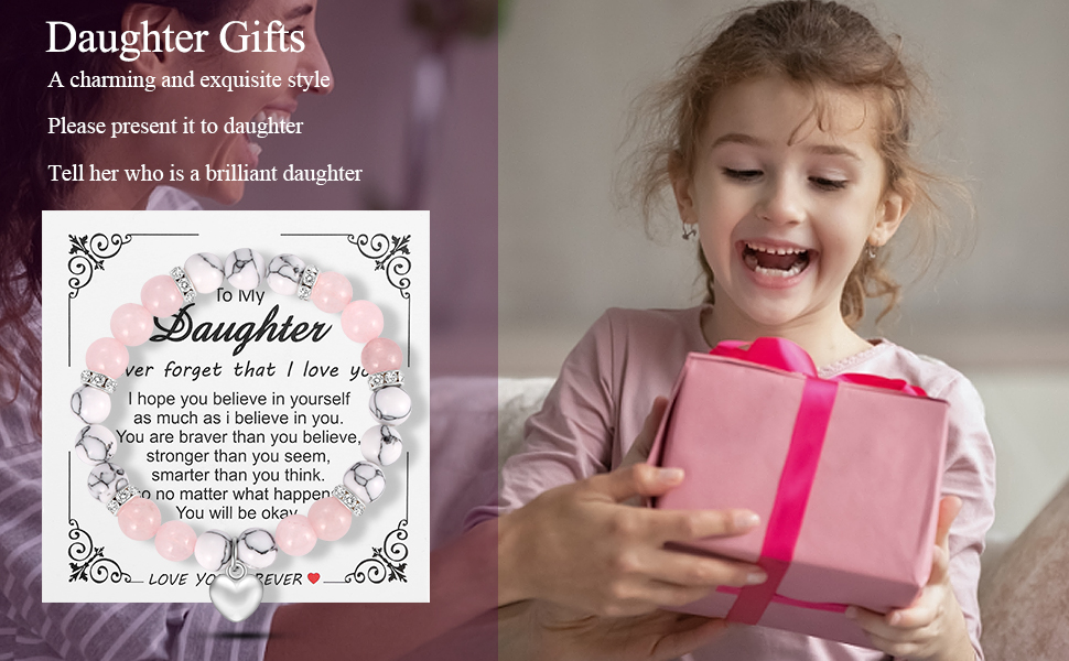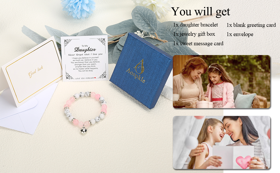 【هدايا ذات معنى】: سوف تحصل على سوار ابنة، وصندوق هدايا مجوهرات، وبطاقة رسالة جميلة، وبطاقة تهنئة فارغة ومغلف. سواء كنت تبحث عن هدايا للابنة، فإن هذا المنتج يقدم شيئًا خاصًا سيعتز به أي شخص يستلمه. .