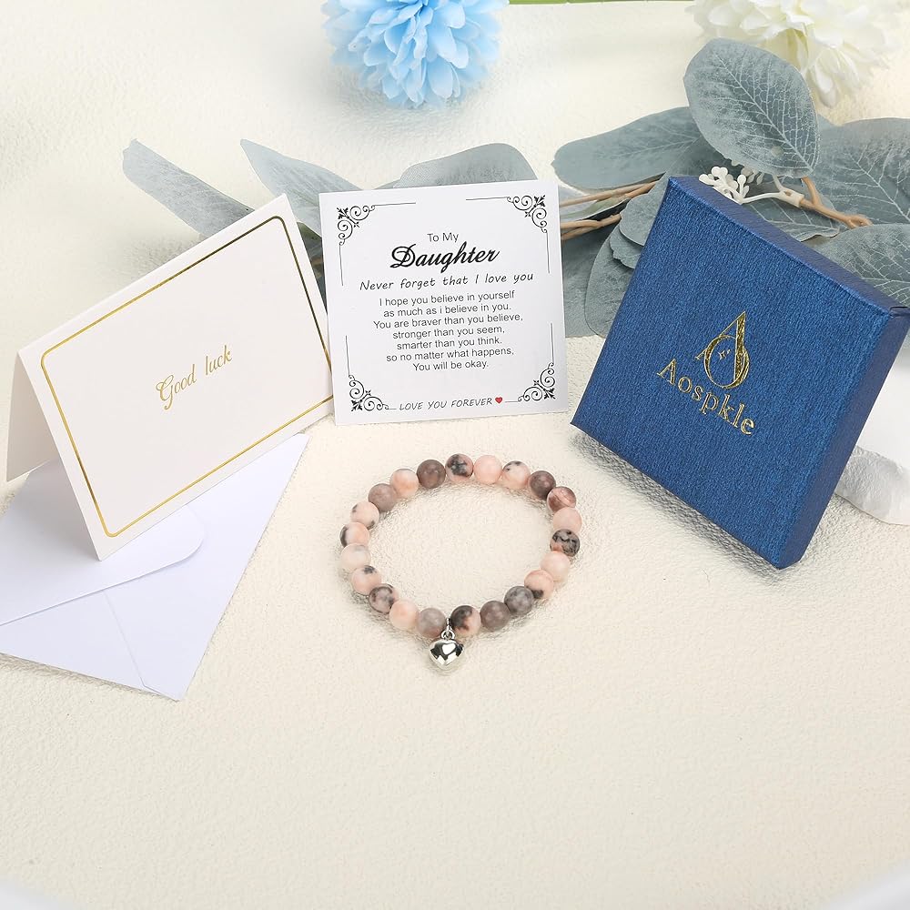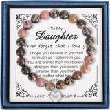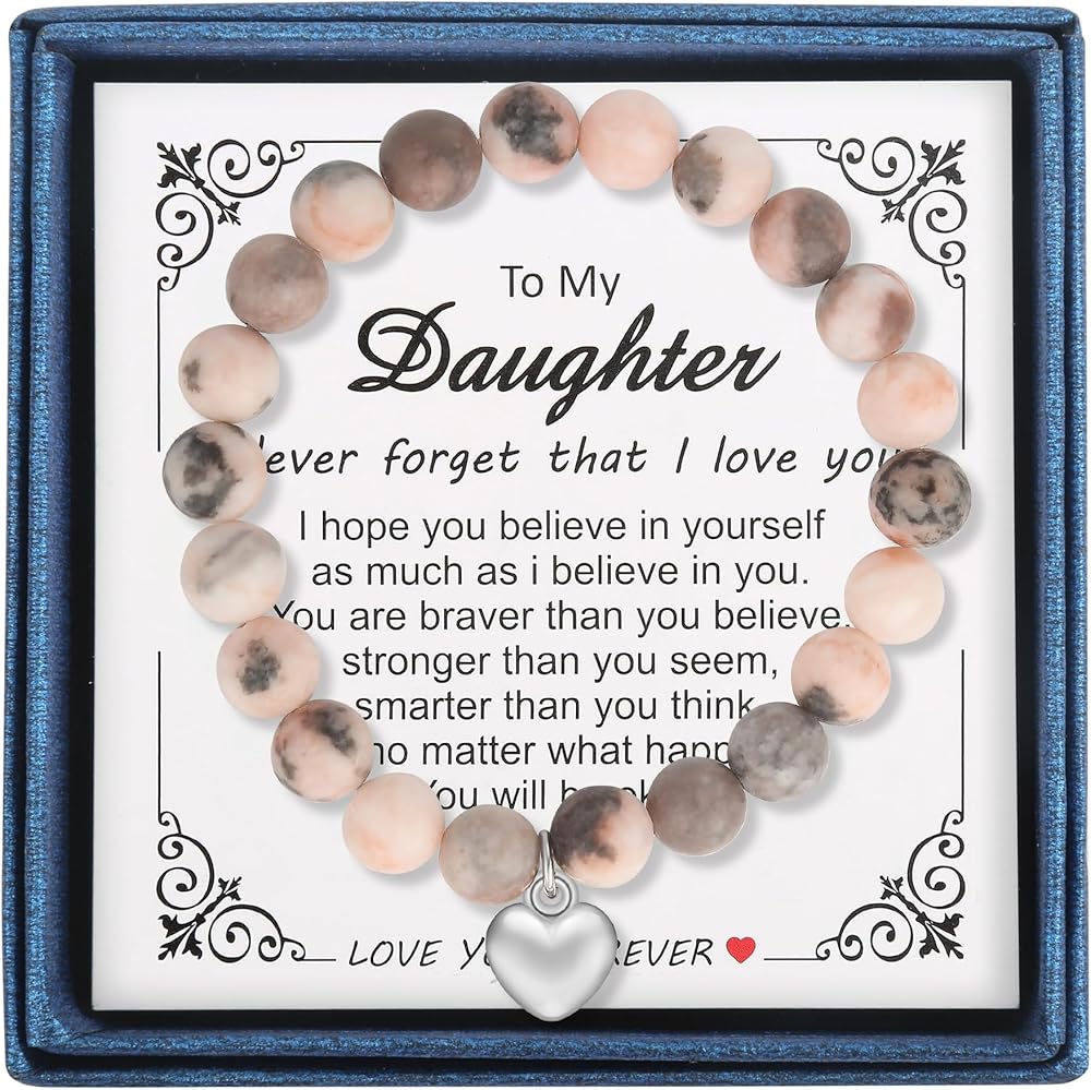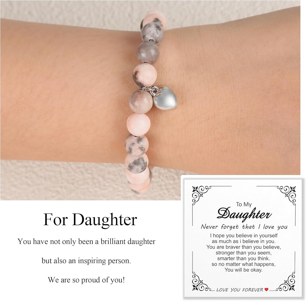 【هدية للابنة】: يأتي السوار وبطاقة الرسائل معبأة في صندوق هدايا جميل. العبوة تجعلها هدية مثالية لابنتك، مما يضمن أنها تعرف مدى اهتمامك. ومن المؤكد أنها سترسم الابتسامة على وجهها في كل مرة ترتديها.