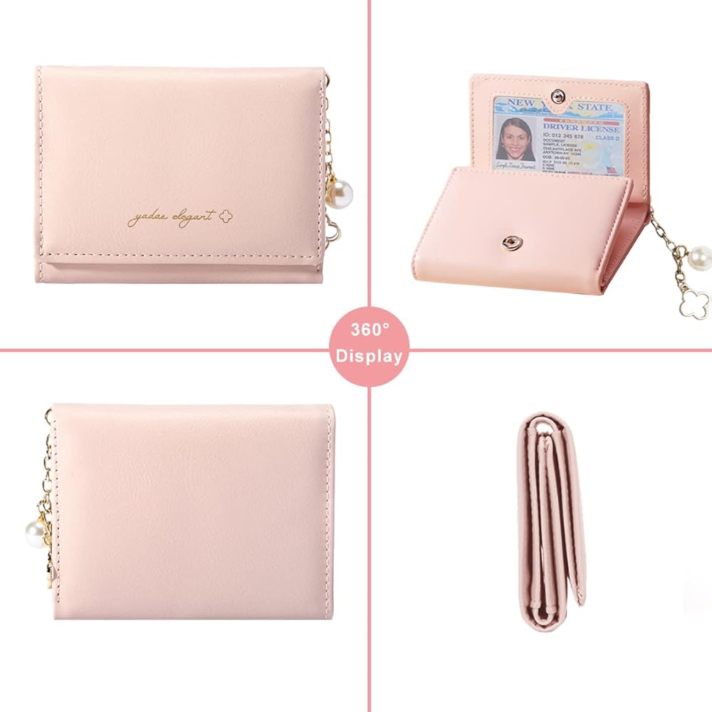 The elegant floarl pearl chain pendant tri-fold card wallet can meet your daily needs to hold your cash, credit cards, coins, ID or photo.