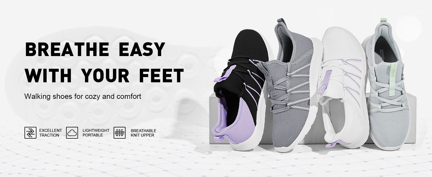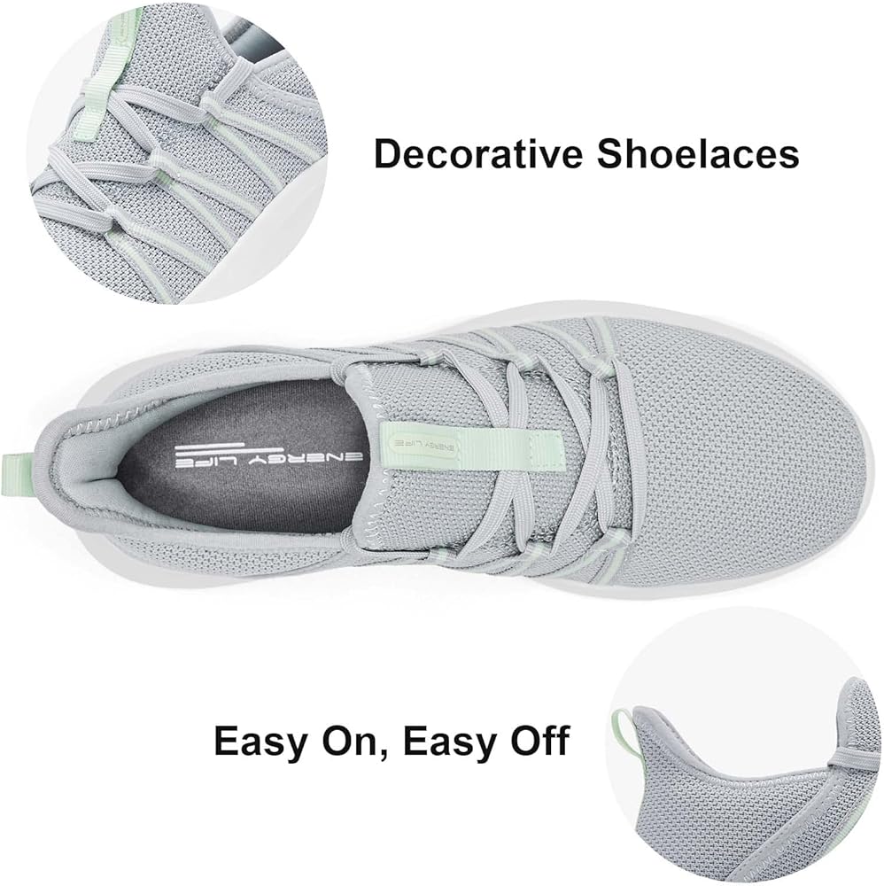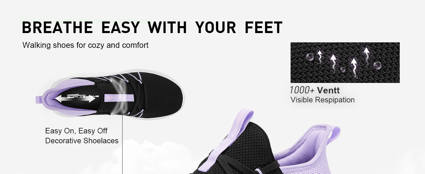 Easy on and off: Are you tired of just lacing your darn shoes every time? These women's walking shoes feature an elastic slip-on closure with a small tab at the backs to help users pull them on