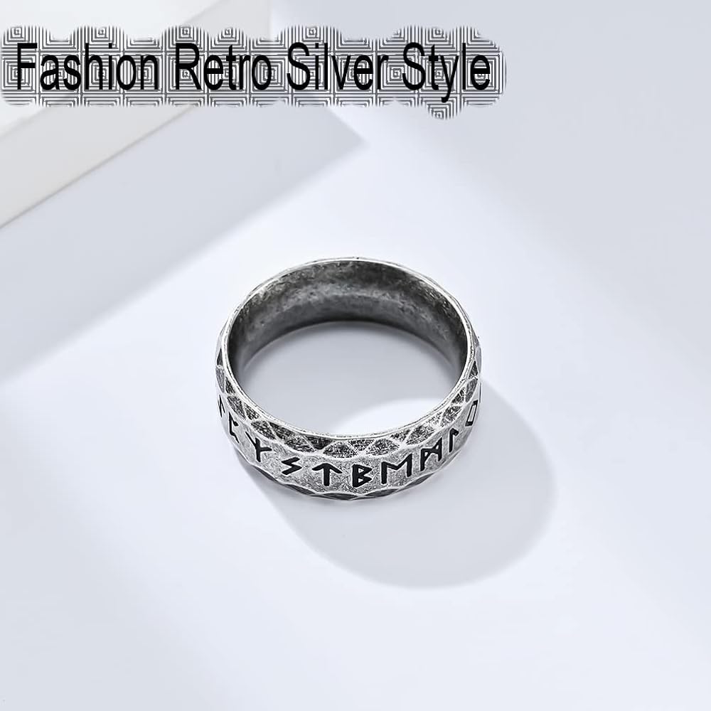 Size: 8MM wide ring; Sizes 7-13; Weight: 0.26oz; Color: Black, Silver, Retro Silver, The Runes on the Viking Ring are clear and won't fade.