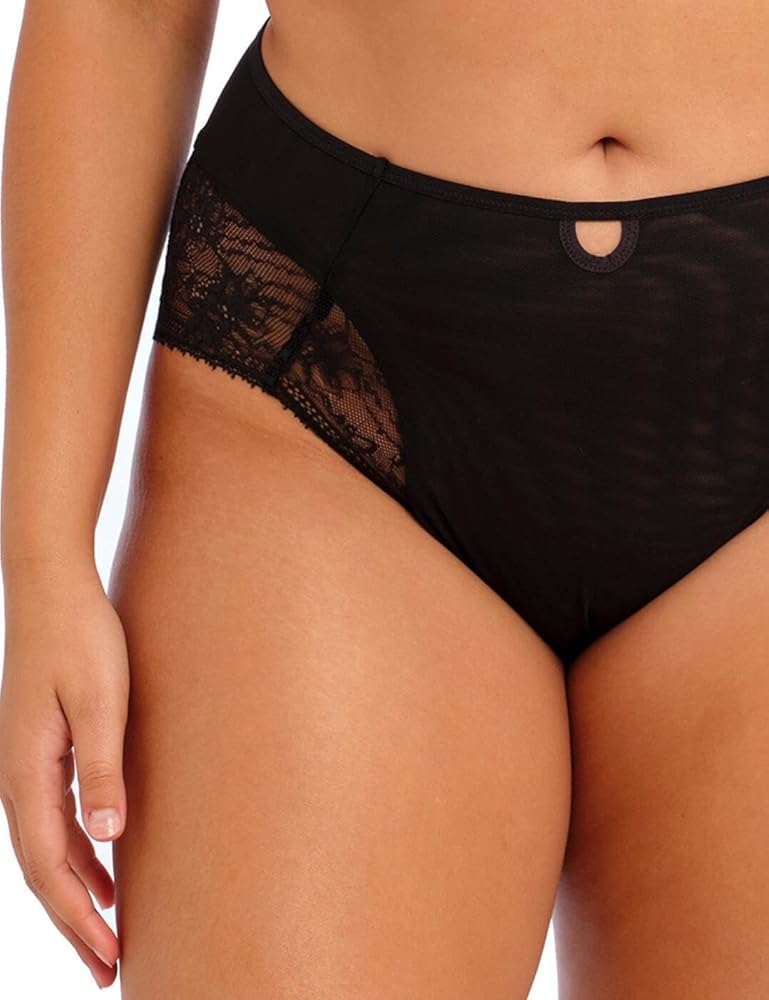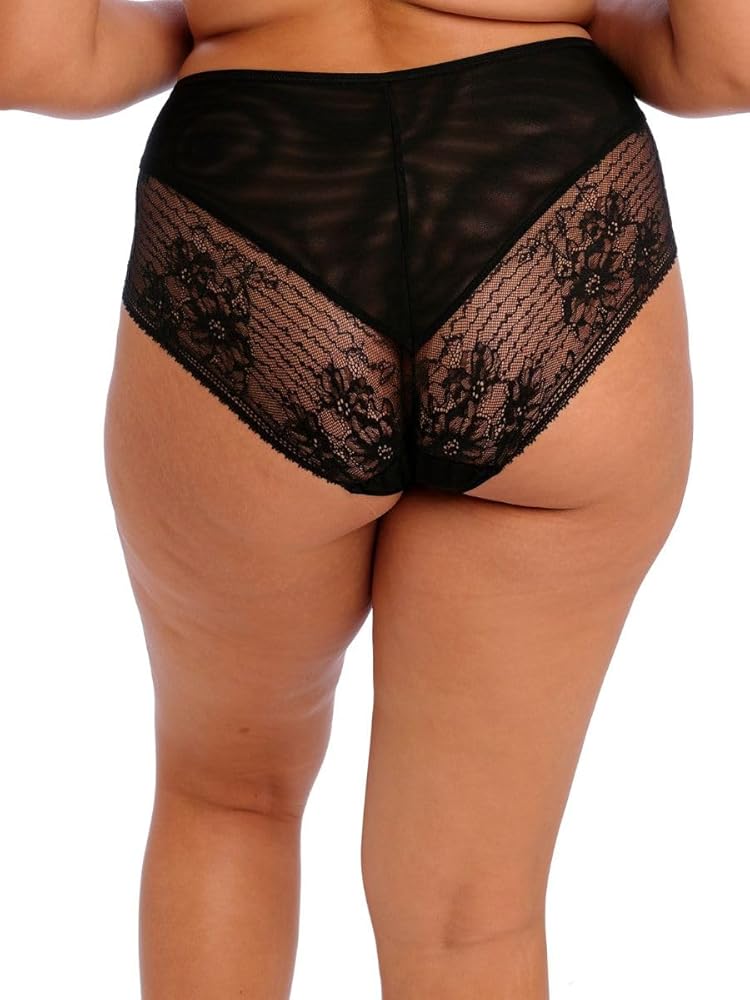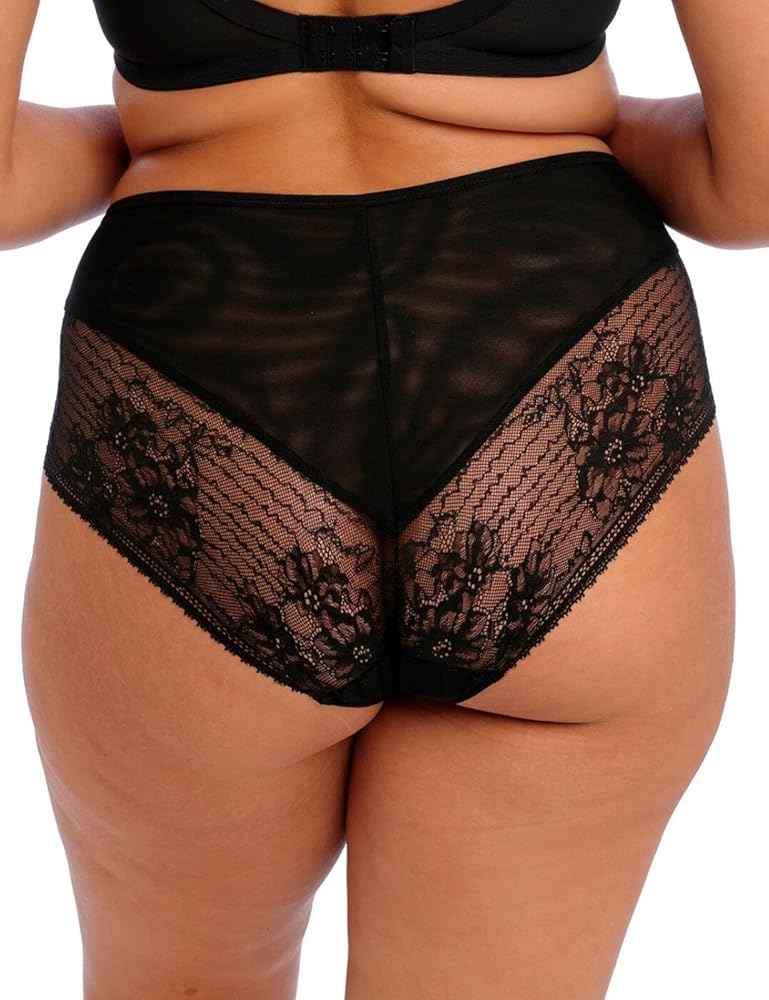 Semi-sheer stretch lace leg and rear panels hug to your curves without cutting in
