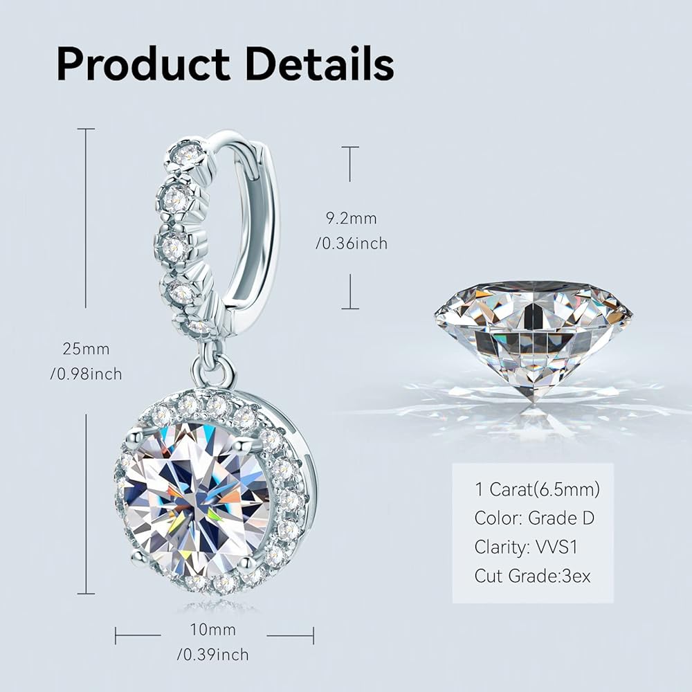 💕Moissanite Dangle Earrings:💕 Each moissanite dangle earring is made up of 3.0 ct/9 mm real moissanite, total 6ct per pair, D-E color, and VVS1 Clarity. Brilliant-cut moissanite diamonds reflect more fire and brilliance than any other gemstone including diamonds and the sparks of the moissanite can be seen from every angle. Not only it is a cost-effective choice over diamonds, but also you will get a lot of compliments for these huggie hoop earrings.