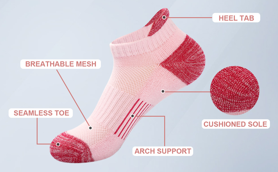Low Ankle Socks:Featuring a low cut that sits right at the ankle line, these athletic socks help prevent chafing and are the perfect match with athletic shoes, trainers, sneakers and hiking boots.
