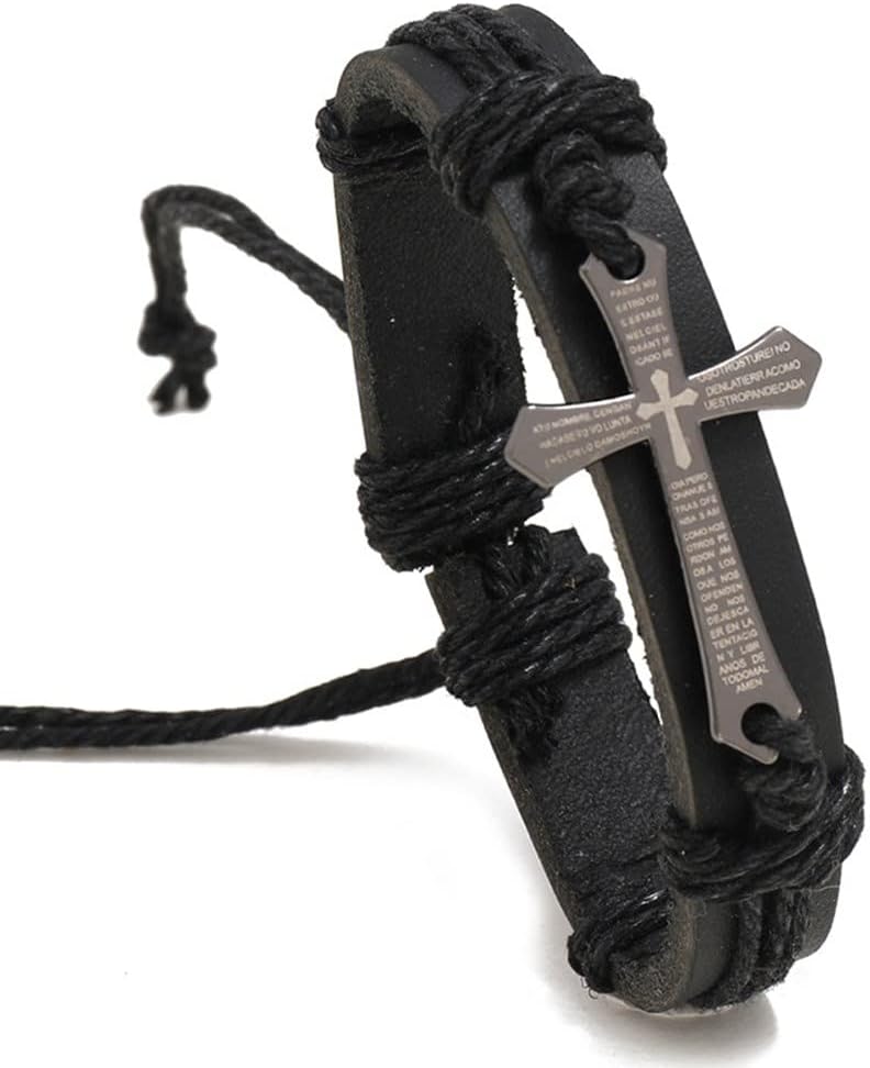Good Size: This religious cross wristband cuff total length is 17-18cm (6.7-7inch), width 1.2cm (0.47inch),both ends of the bracelet have a rope clasp, which can be freely contracted to adjust the size to meet the different thickness of the wrist.
