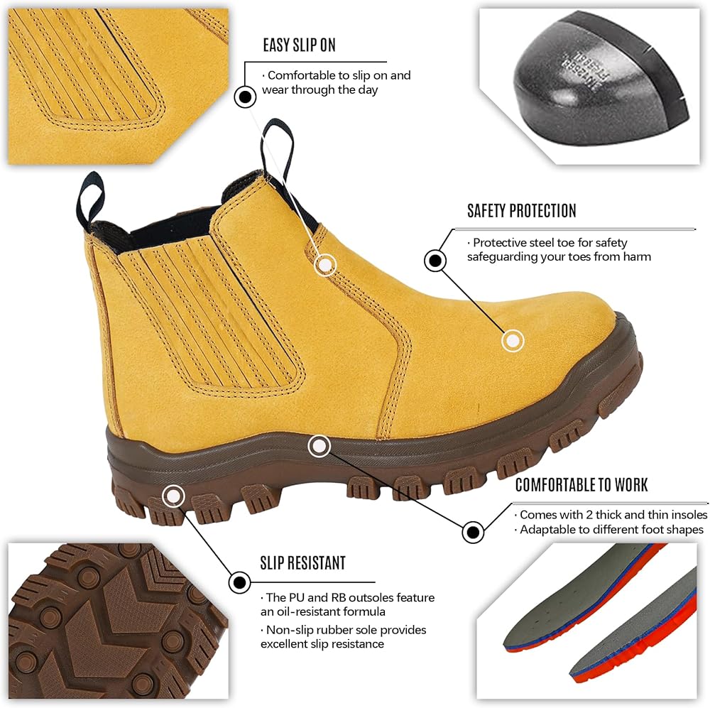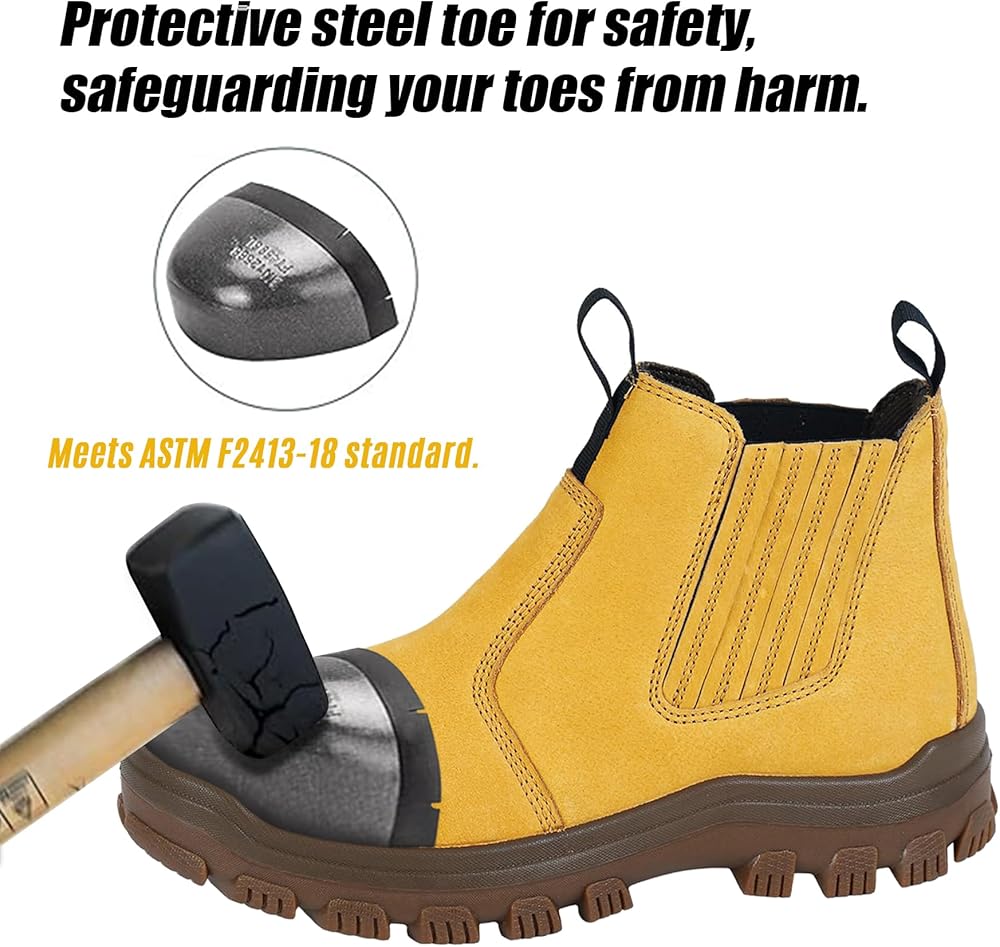 Impact resistance: Safety steel toe --- level 1 toe cap protection impact energy of 125 joules.