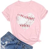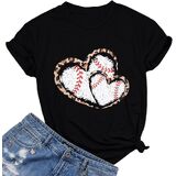 Package included:1*Love Heart Baseball Print Graphic Funny T-Shirt Summer Casual Short Sleeve Pullover Tees Top