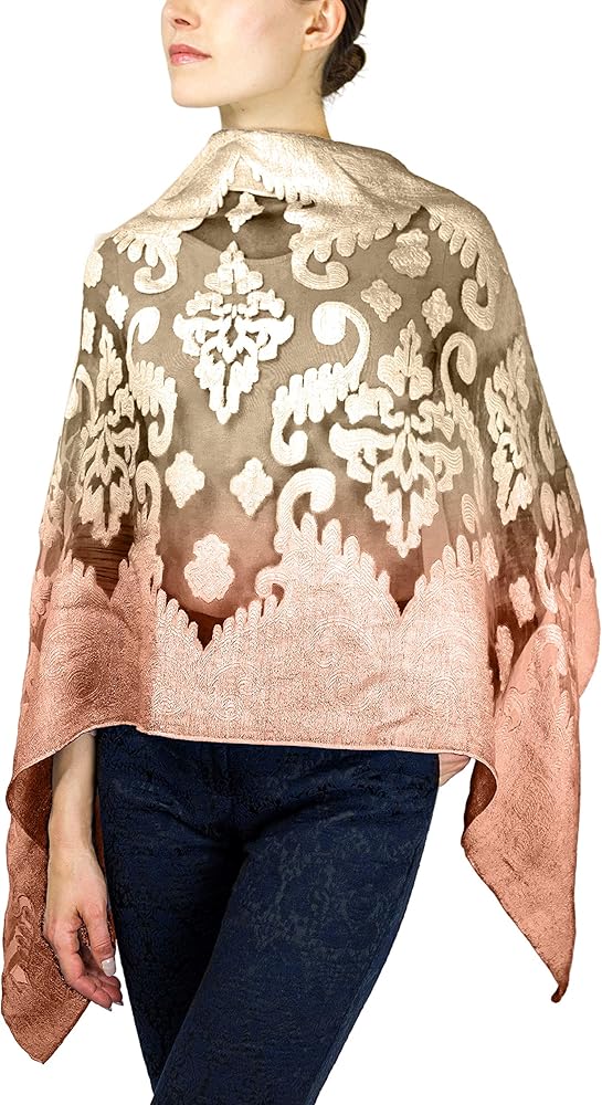 ELEGANT AND CHIC. Put your sophisticated taste on display when you wear this elegant women's wrap. It's sheer fabric and brocade design makes it a perfect clothing accessory for an evening out with friends, weddings, cocktail parties and even for a busy day at the office. jessica mcclintock keeps you stylish day and night.