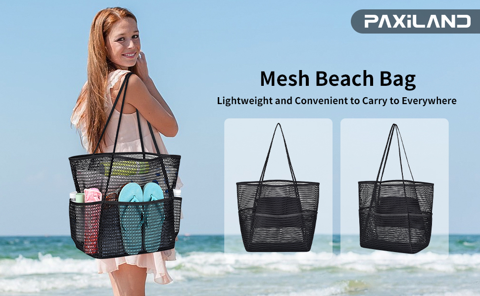 【 Large Capacity 】- This mesh beach bag is lightweight and roomy, perfect for carrying all of your beach essentials. It has a capacity of 28 liters and can hold up to 4-6 beach towels, water bottles, toys, sunblock, shoes, sunglasses, etc.
