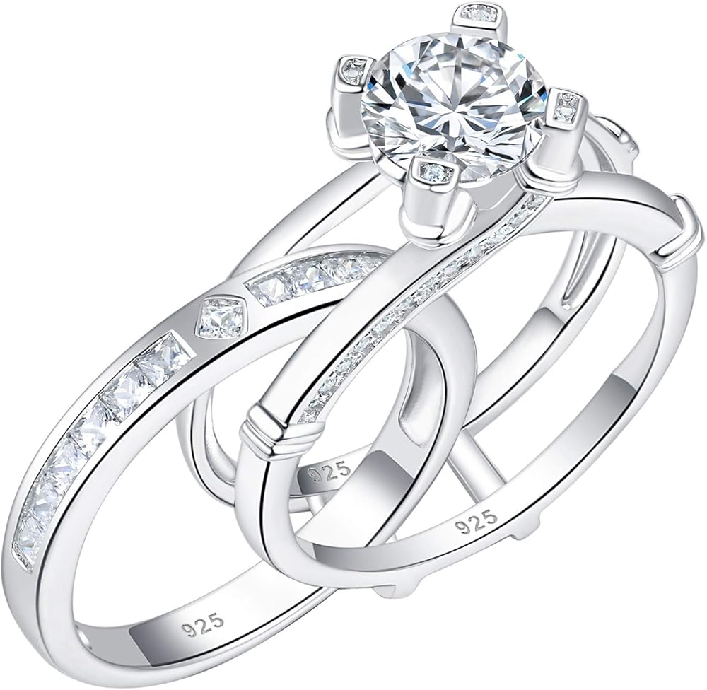 ❤ Material - The 925 sterling silver women wedding ring set with high quality AAA grade cubic zirconia, genuine 925 sterling silver rings with 925 stamp. hypoallergenic and nickel free, tarnish resistant and will not easily change color.