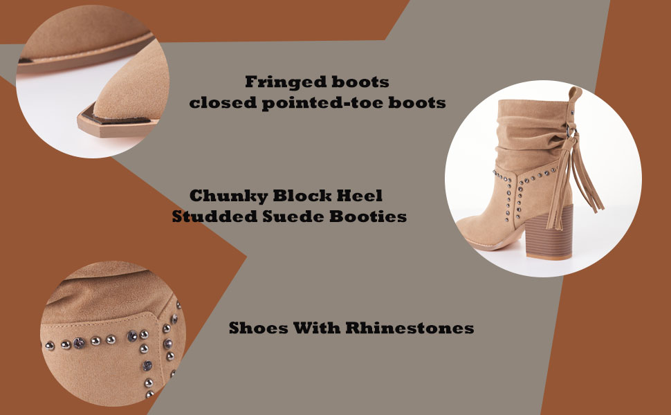 Fringed Tassels Boots:Vintage fringe accessories, 2.95 inch/7.5cm chunky mid heel, classic style, all these elements combine perfectly to form this charming fringe boots. A must-have fashion ankle boot for spring, fall and winter.