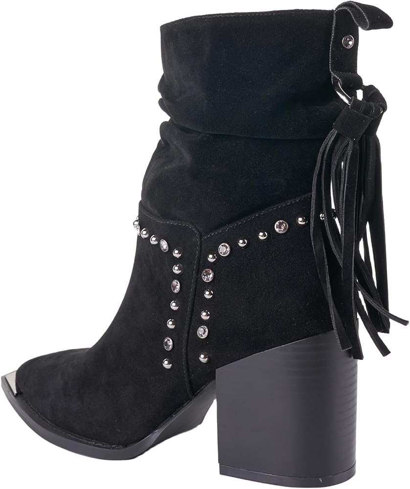 Pointed Toe Booties:With a textured metal toe, these pointed-toe tasseled boots keep your feet warm, stylish and sexy at the same time.
