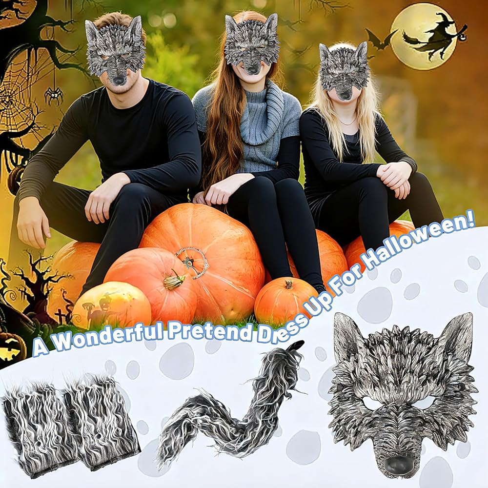✅【Perfect Wolf Costume Party Halloween Dress Up】Our werewolf costume for Halloween includes 1 realistic Halloween wolf mask, 1 pair wolf gloves and 1 wolf tail. Perfect Halloween costume that will make you look scary and eye-catching at a Halloween party!