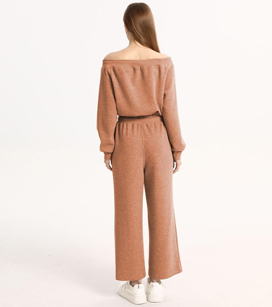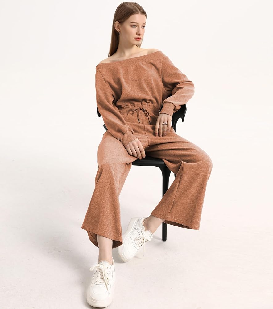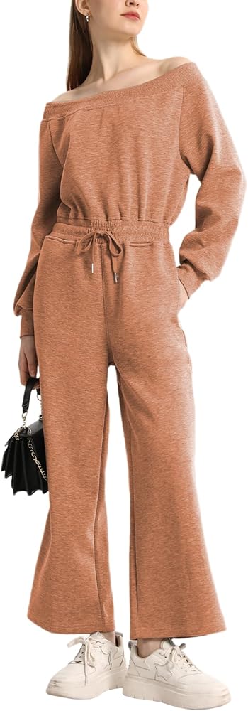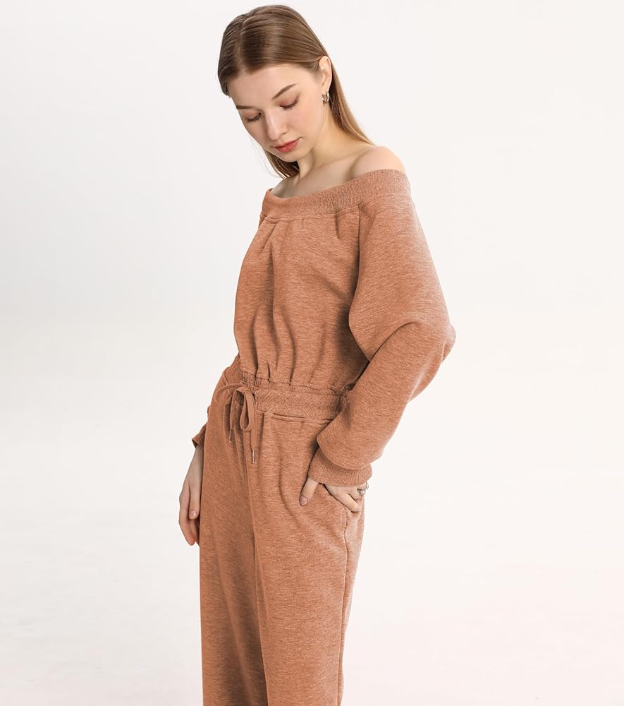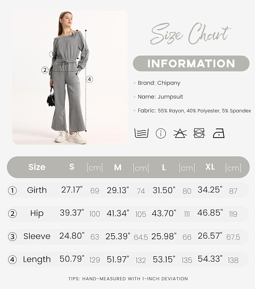 Features: Casual, elastic waist, one piece, one off shoulder, wide feet, long sleeves,solid color, two pockets, add elastic to the neckline to prevent deformation, stretchable long pants jumpsuit