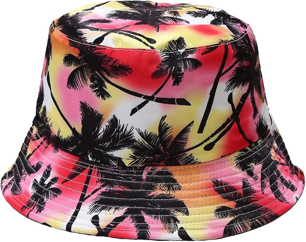 Tropical patterns: Hawaii tropical floral & palm tree all over the bucket hat, Easy to match your hawaii tropical outfits