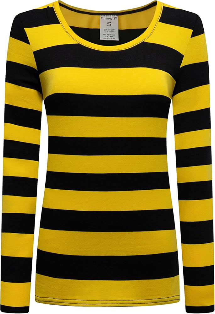 - This scoop neck long-sleeved striped t-shirt works well as casual wear or Halloween costume