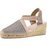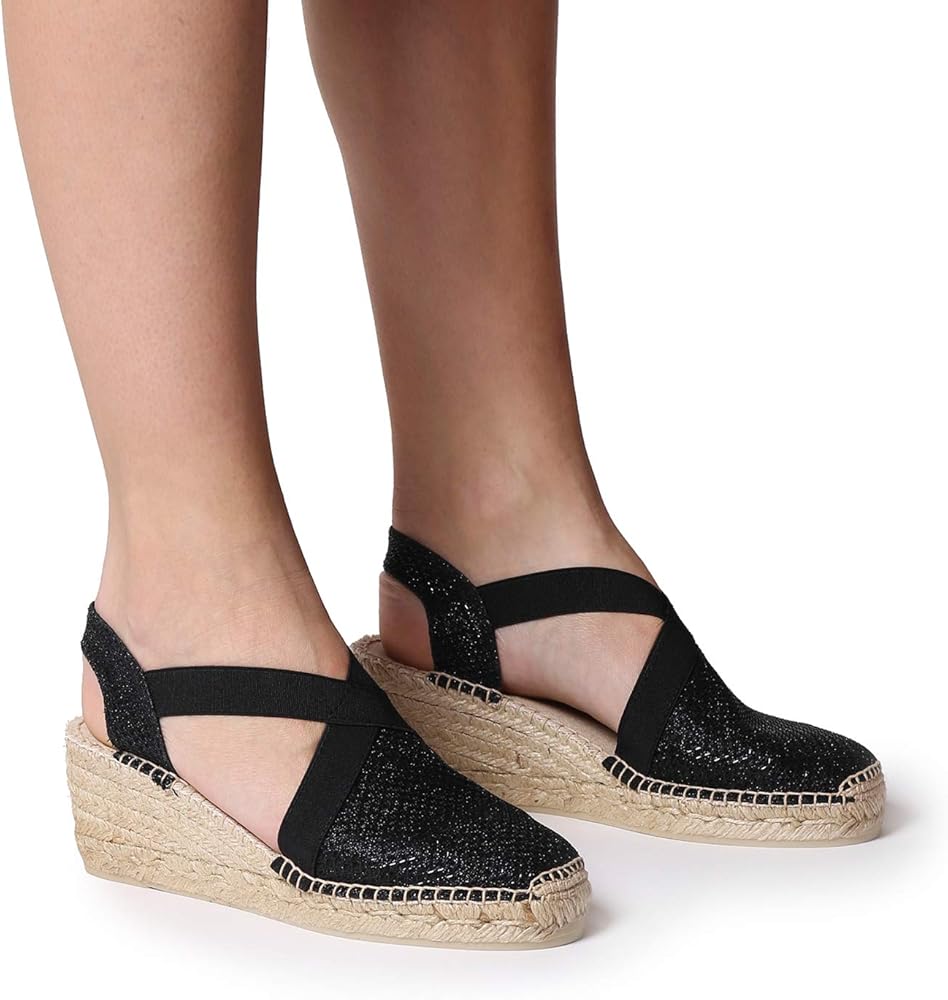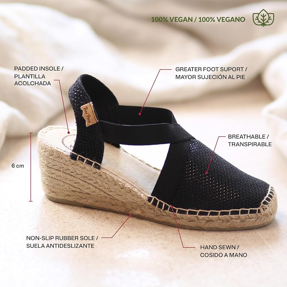 Women's espadrille made of shinny fabric in plain colour. A 4cm wedge with a 2cm platform gives a total heel height of 6 cm. The wedge exterior is entirely made of braided jute and natural rubber. Fabric-lined insole for greater comfort. The fabric upper is hand-stitched to the sole using high-quality cotton thread.